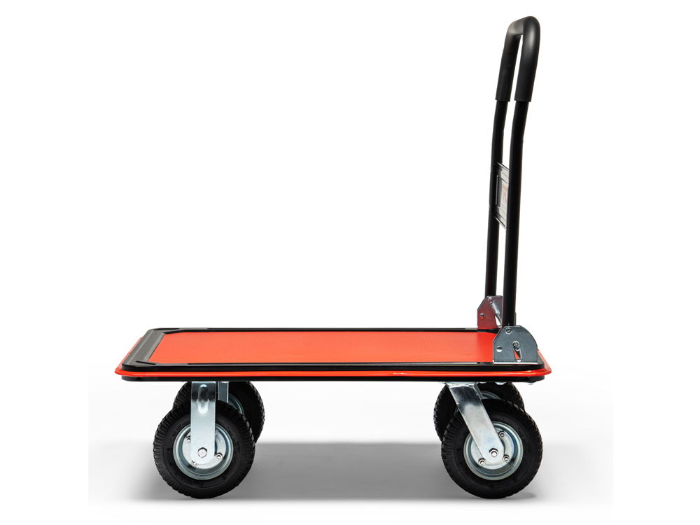 Posiada bardzo wytrzymałą platformę transportową o wymiarach 90 x 61 cm. Znajdzie zastosowanie w magazynach, sklepach, warsztatach oraz wszędzie tam gdzie występuje konieczność transportowania różnego rodzaju towarów.