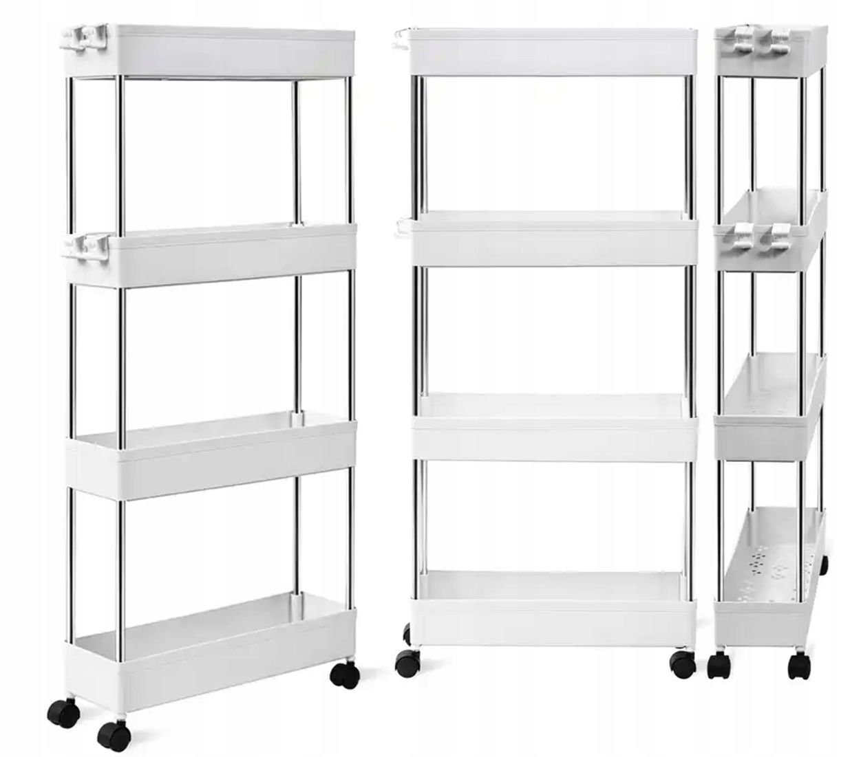 WÓZEK NA KÓŁKACH KUCHENNY POMOCNIK MOBILNY ŁAZIENKOWY BIAŁA 4 PÓŁKI REGAŁ