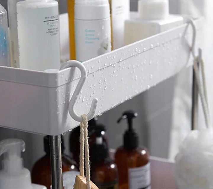 - Funkcjonalność: Posiada 4 półki, które pozwalają na wygodne przechowywanie środków higienicznych, płynów, proszków do prania oraz innych produktów gospodarstwa domowego.