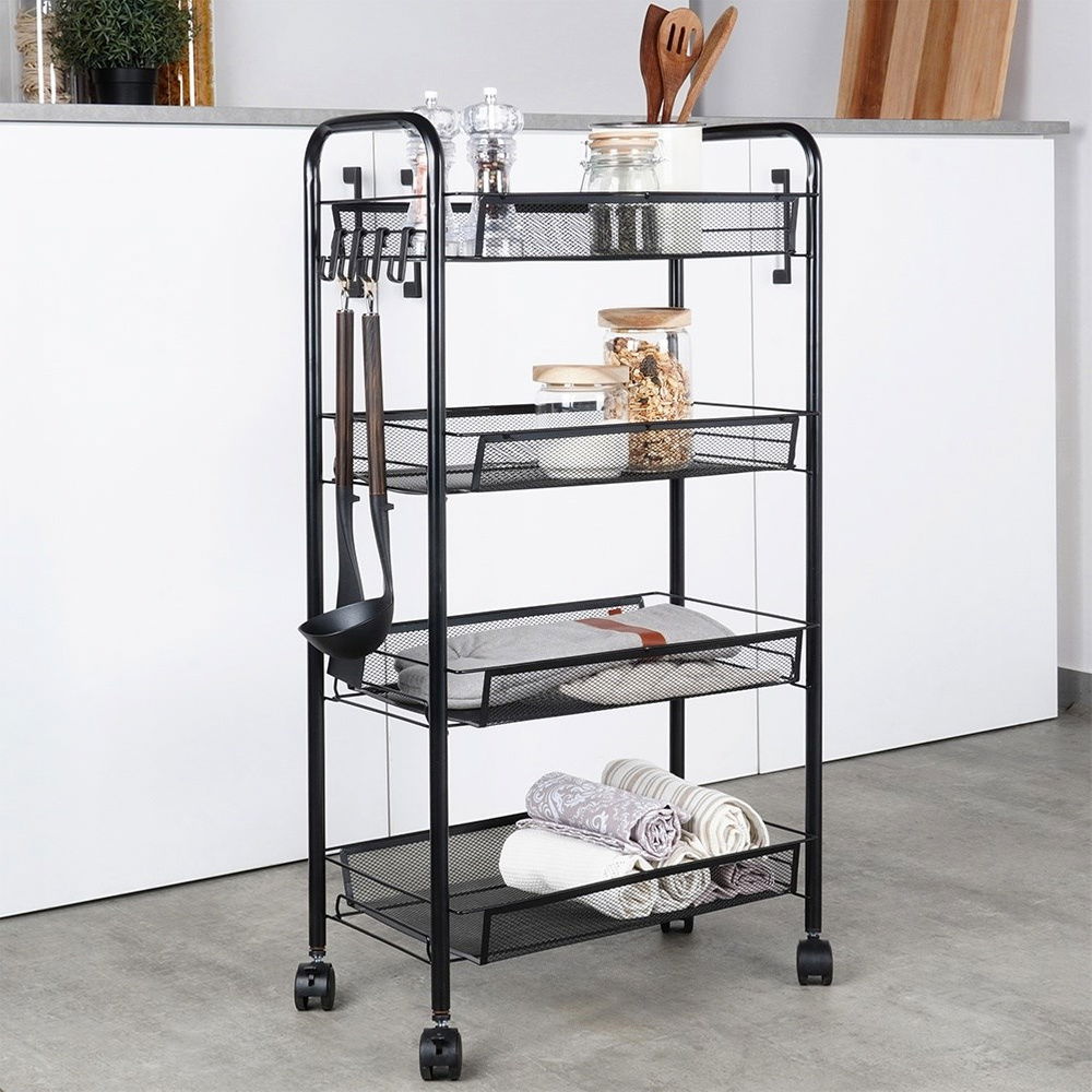Wózek na Kółkach Mobilny Regał Kuchenny Łazienkowy 4 Poziomowy Szafka Półka