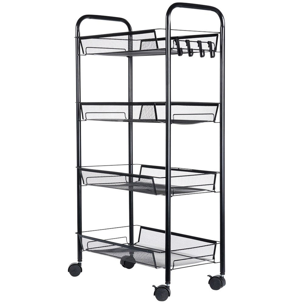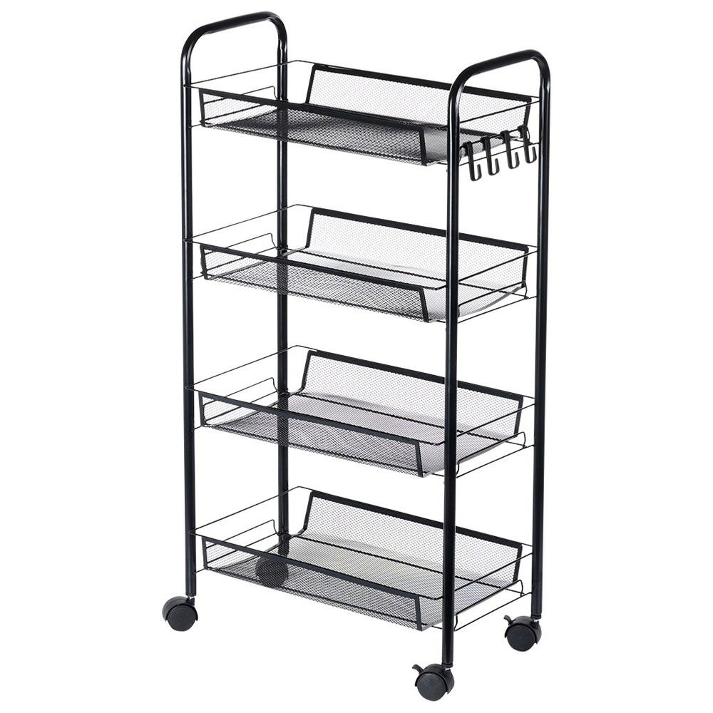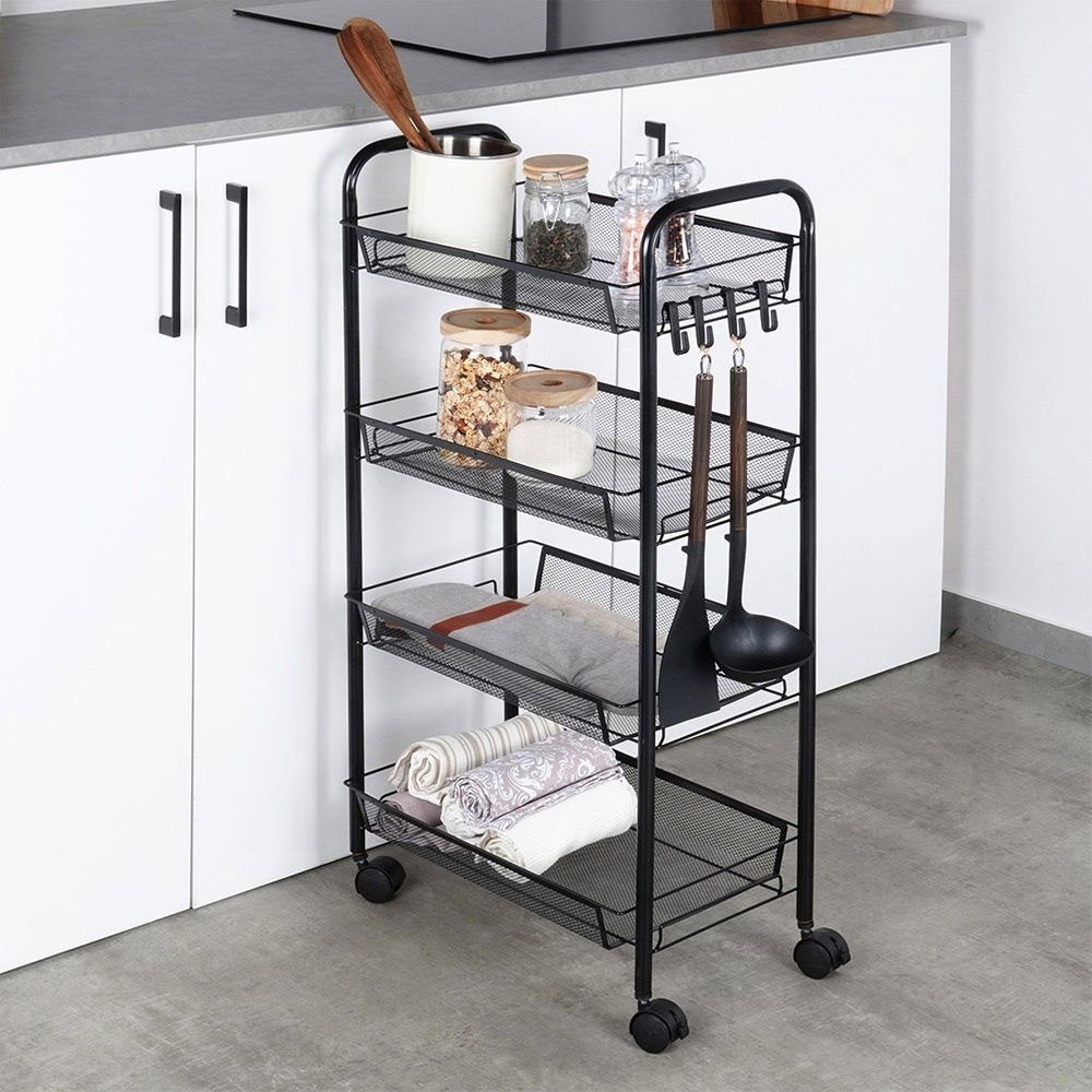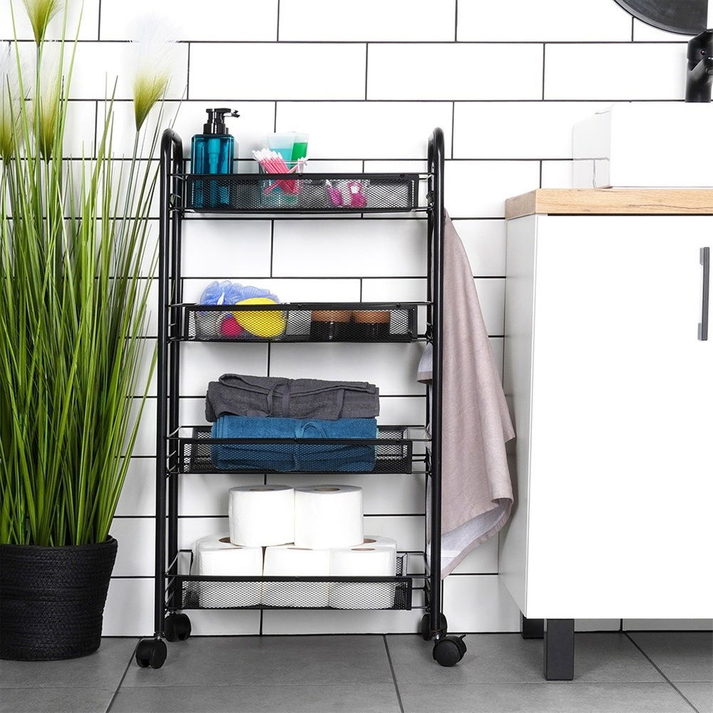 Regał 4 poziomowy - Praktyczny, mobilny regał z czterema poziomami do przechowywania. Regał ma wymiary 44 x 26 x 84 cm i jest wyposażony w cztery półki w formie koszyków o wymiarach 40,5 x 26 cm.