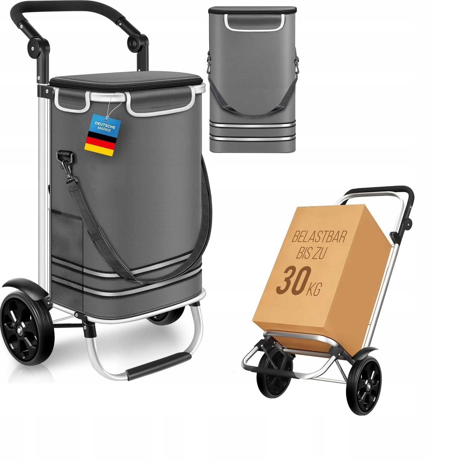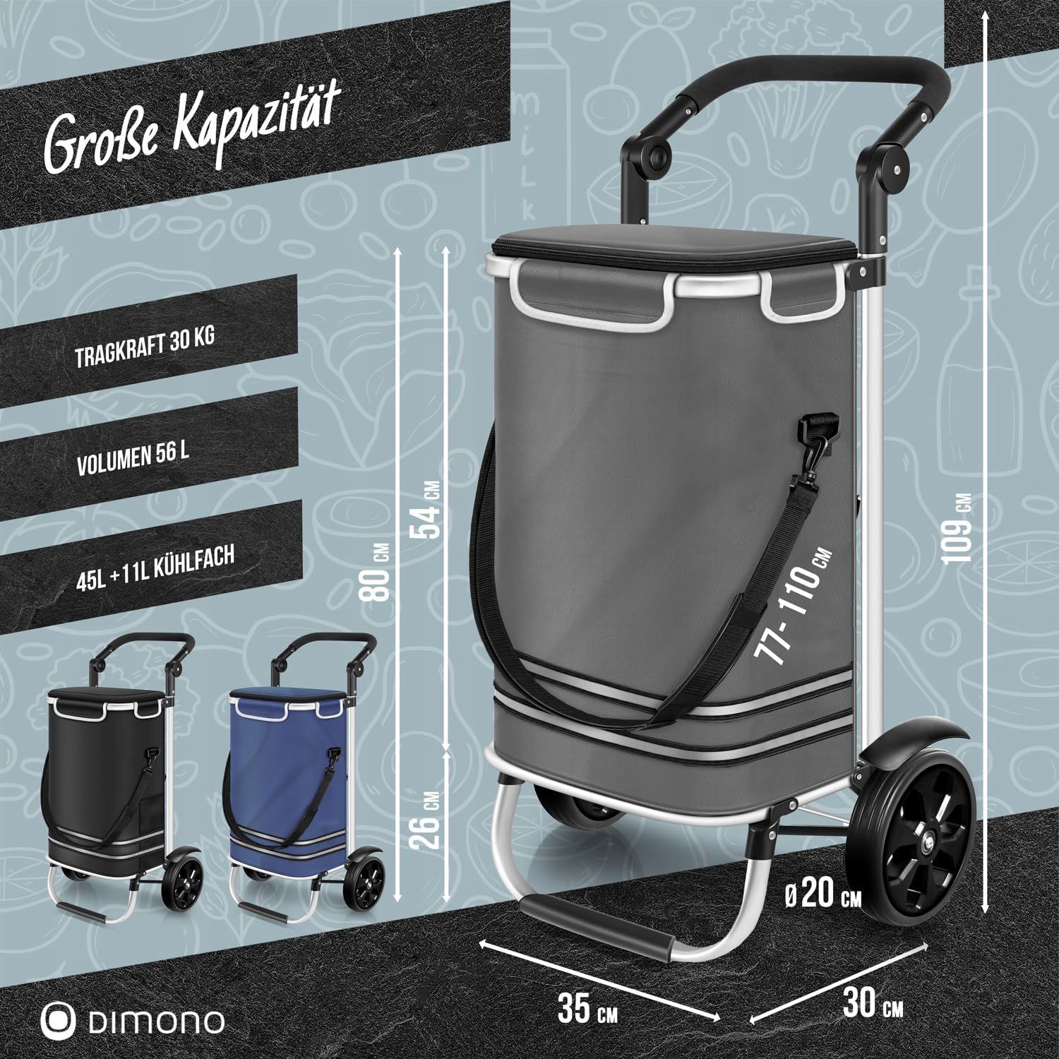 Wózek na zakupy Dimono składany 3w1, wózek transportowy 56L, SZARY
