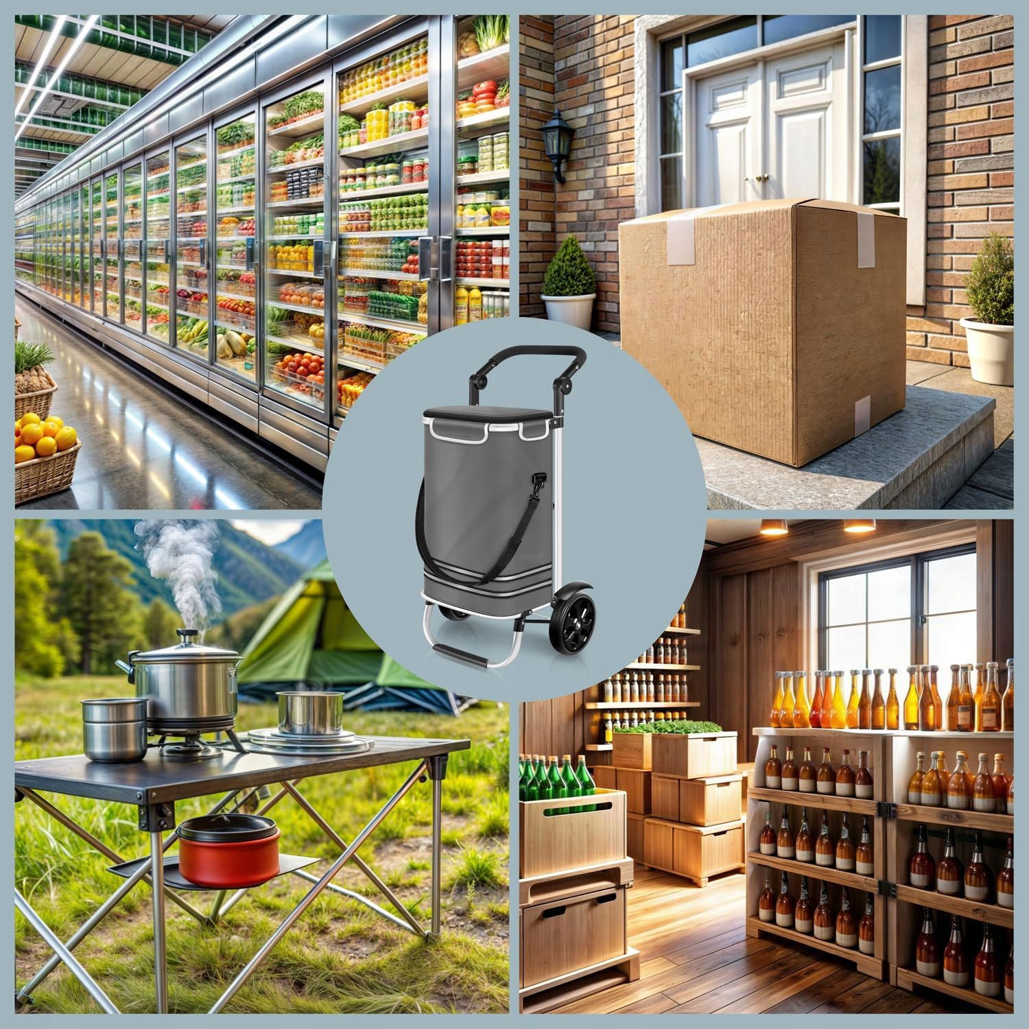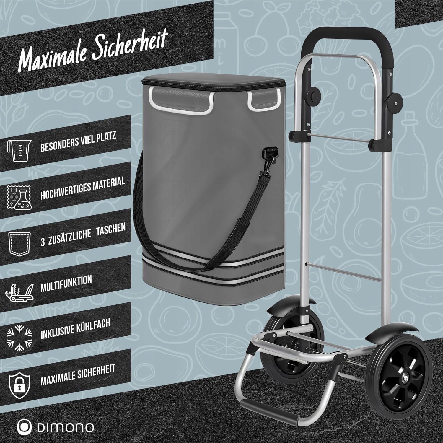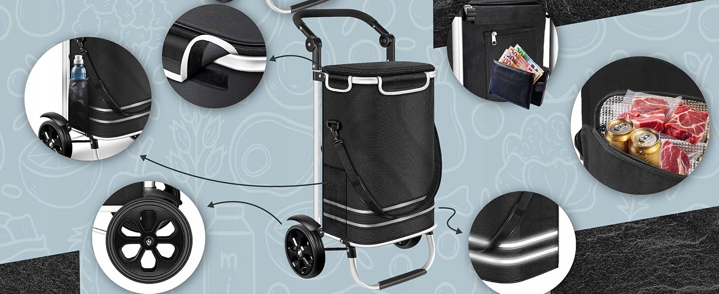 Atrakcyjna torba - duża pojemność torby - 56L sprawia, że jest idealna na małe i duże zakupy, zintegrowana torba chłodnicza zapewni świeżość wrażliwych artykułów spożywczych. Dodatkowo torbę można nosić samodzielnie.