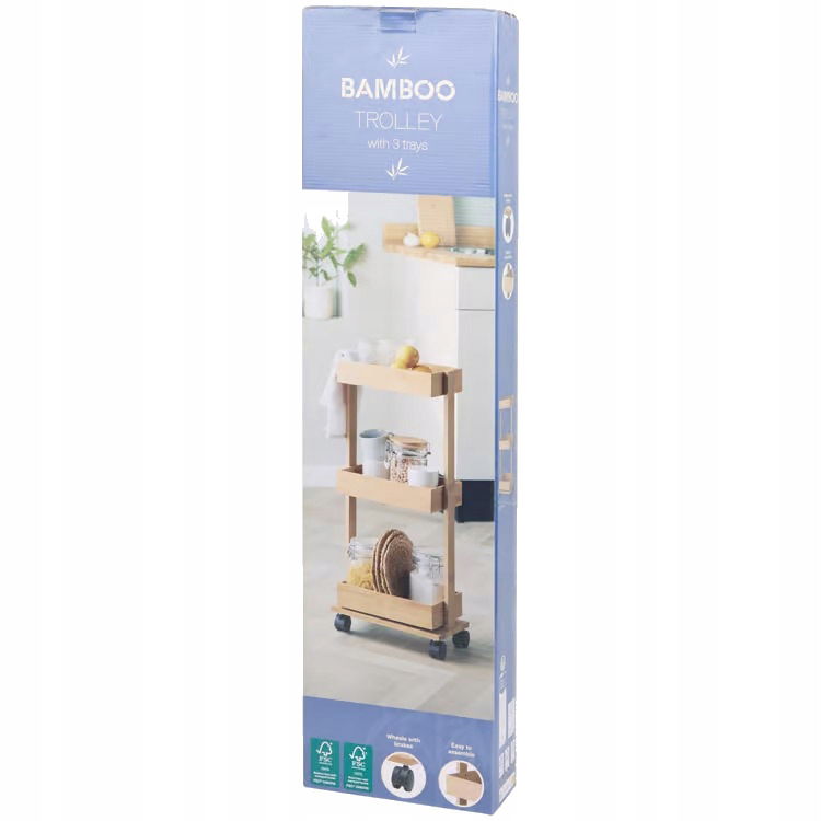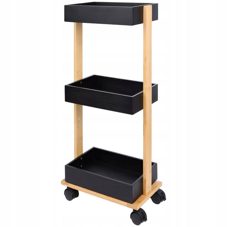 Wózek platforma na kółkach 3 poziomowy do przechowywania bambusowy 70x32 cm