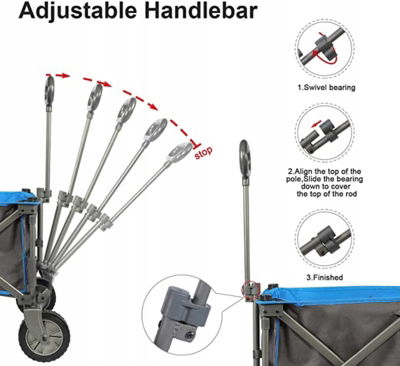 Szerokie zastosowanie: wózek jest idealny do przewożenia zestawu narzędzi ogrodowych, parasoli plażowych, akcesoriów kempingowych i innych ciężkich przedmiotów. Wózek może być używany na zewnątrz, np. na kempingu, na plaży, podczas imprez sportowych lub po prostu w domu.