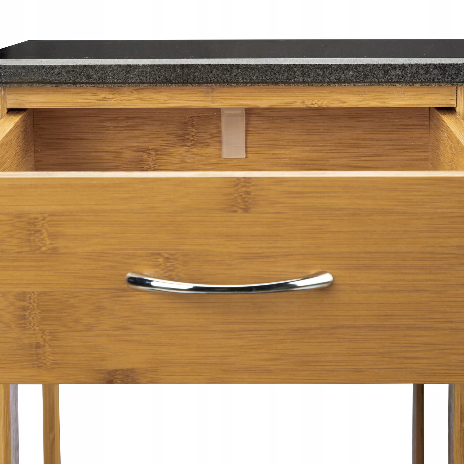 - Elegancka wyspa kuchenna wykonana z bambusa z eleganckim czarnym blatem marmurowym (37 x 37 cm) – drobny wzór słojów drewna w połączeniu z wysokiej jakości kamieniem nadaje stylowy styl dla każdego domu