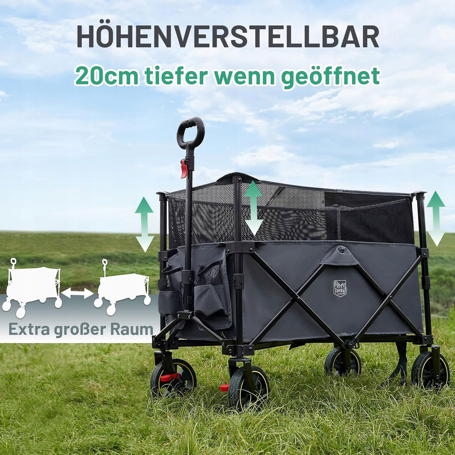 Wózek składany TIMBER RIDGE XXXL 225L 100kg plaża kemping szary
