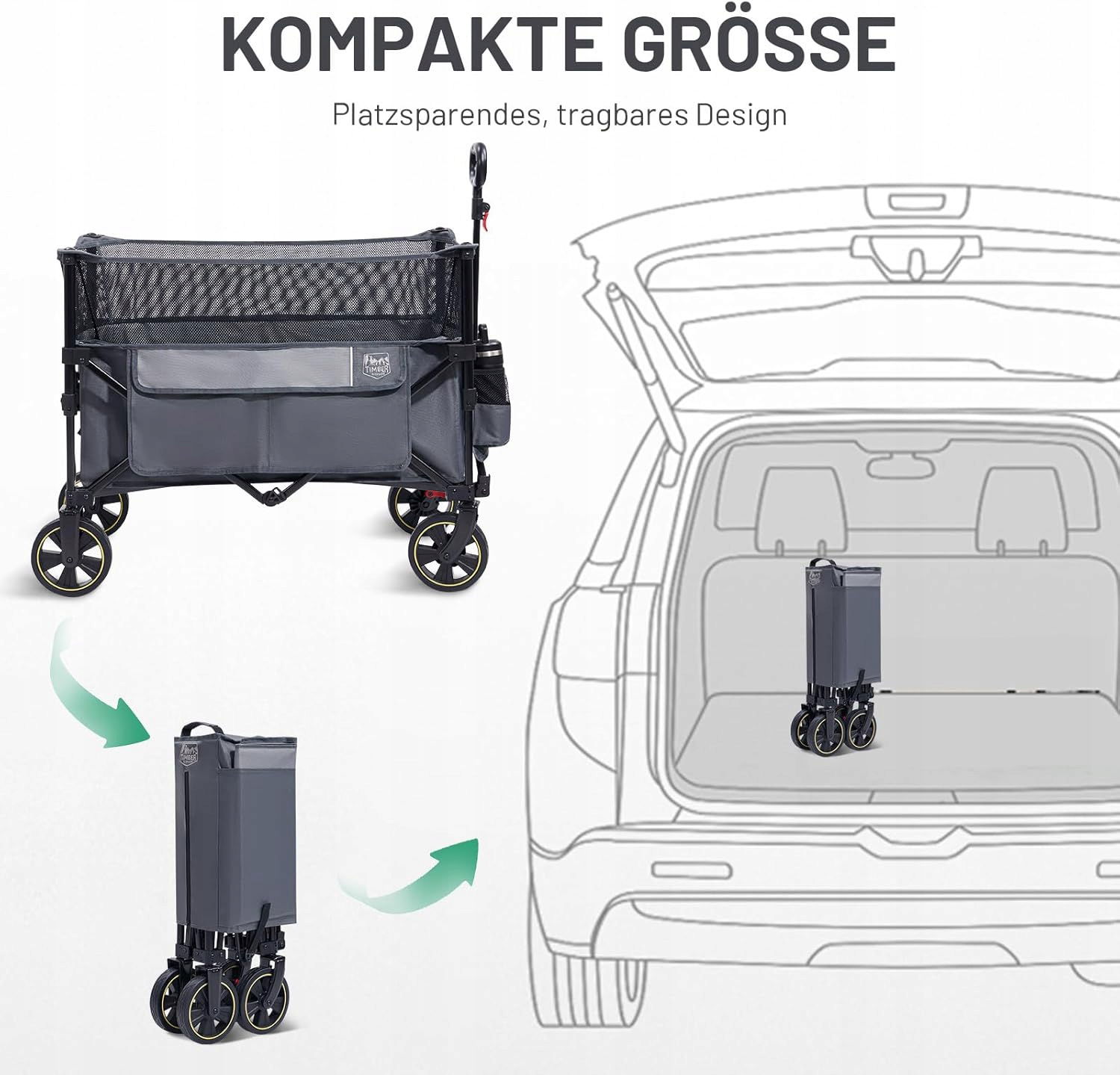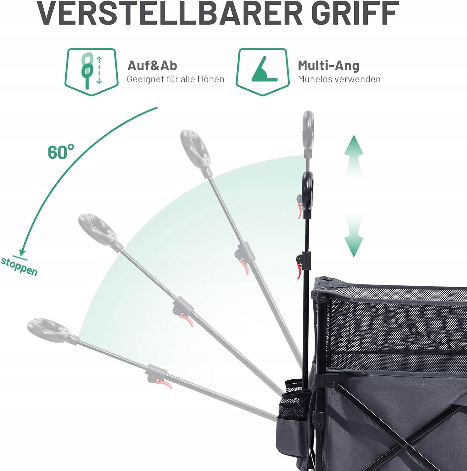 ✅ Funkcja specjalna: Małe wymiary po spakowaniu, Łatwy montaż, Uchwyt na napoje i kieszeń boczna, Regulowany uchwyt, Koła przednie obracane o 360°