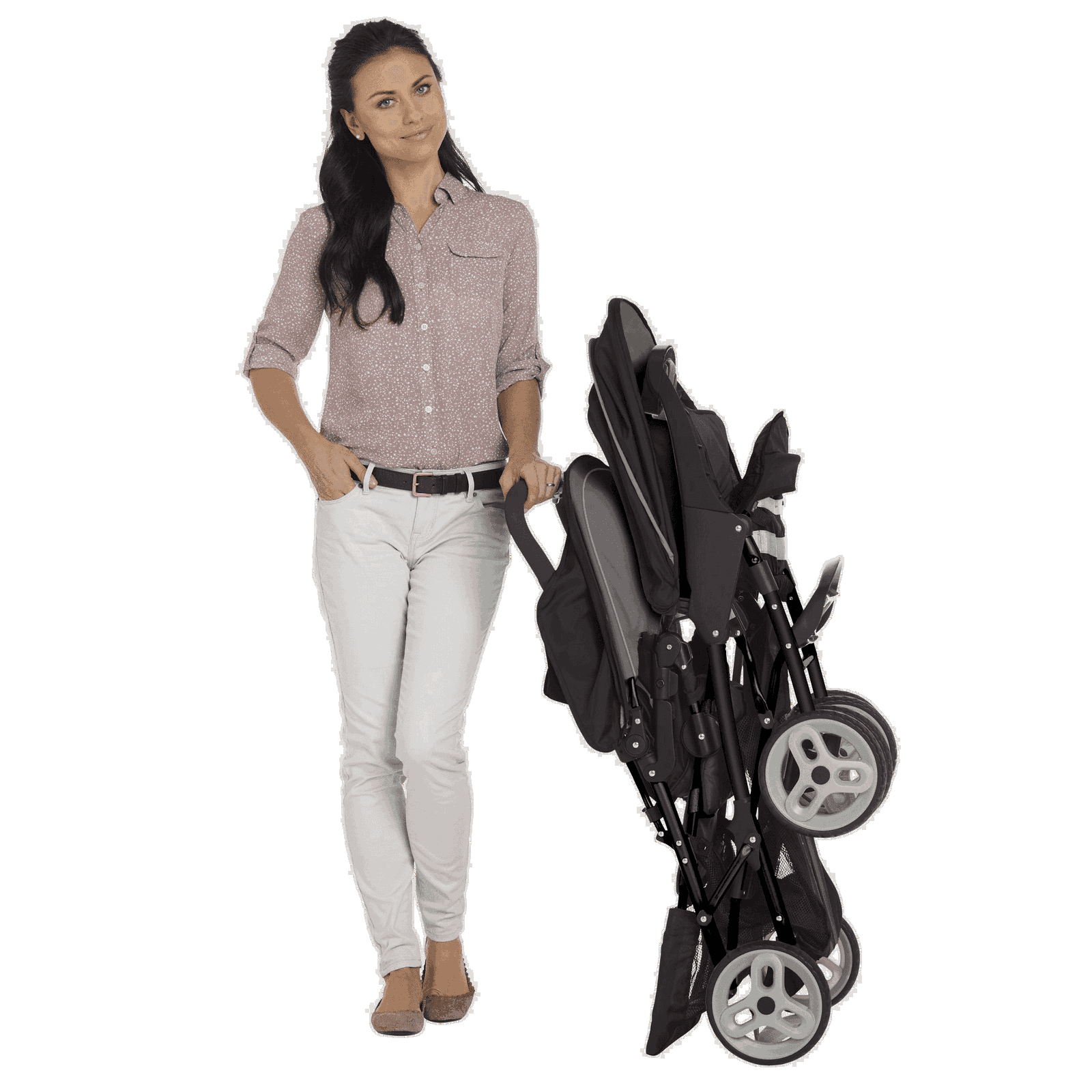 - Względnie łatwe przewożenie w bagażniku samochodowym lub przechowywanie w domu dzięki zoptymalizowanej konstrukcji wózka podwójnego