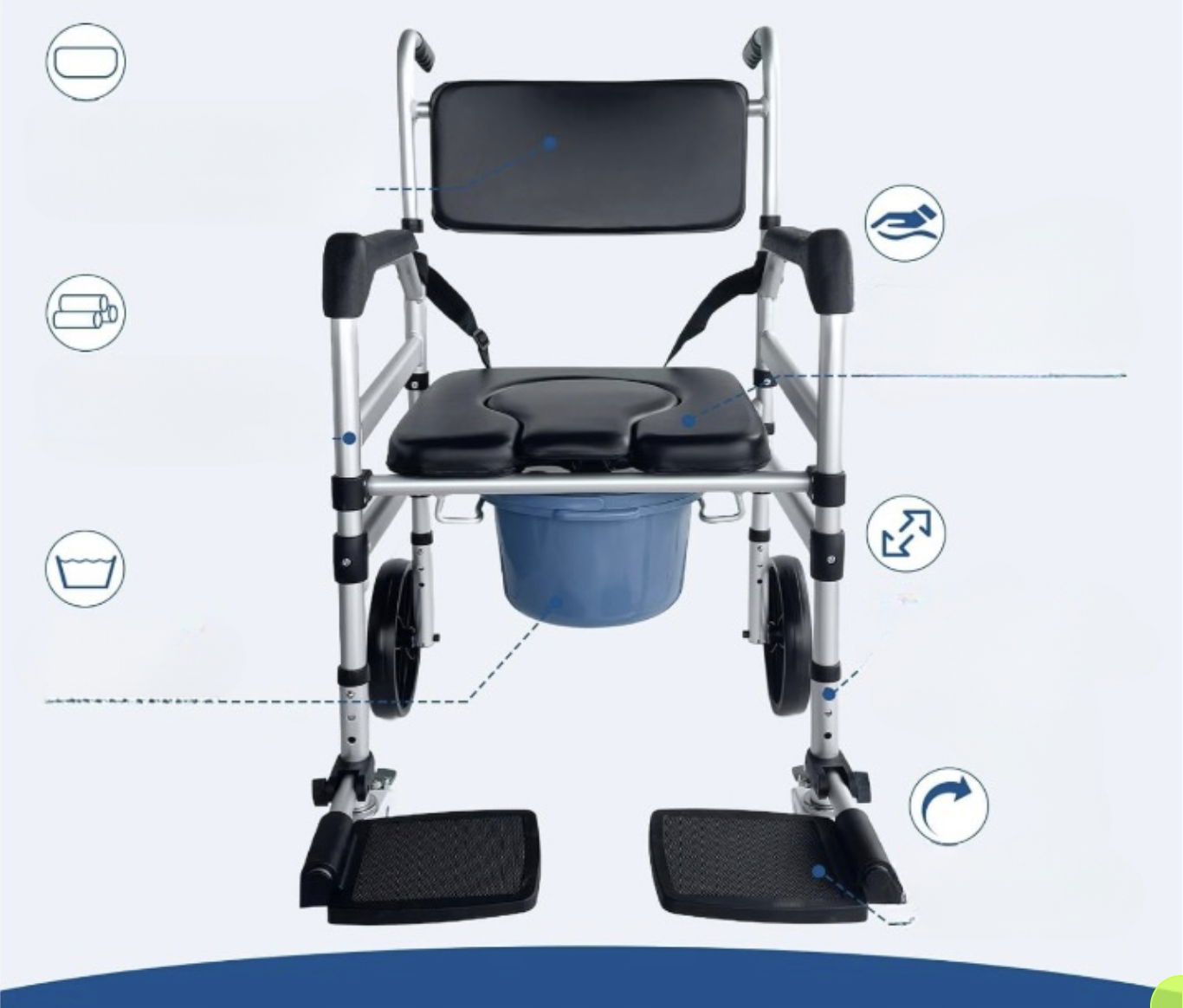 Bezpieczeństwo jest najważniejsze w przypadku opieki seniorów. Dzięki swojej wytrzymałej konstrukcji i antypoślizgowym gumowym uchwytom fotel Eosprim 3 w 1 zapewnia optymalną stabilność.