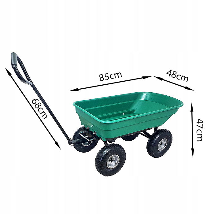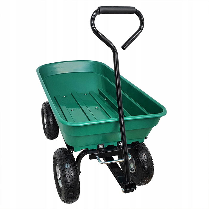 Wielofunkcyjny wózek ogrodowy marki Sherman jest wszechstronnym narzędziem, które może pełnić rolę wózka, taczki, wywrotki, transportera, a nawet przyczepy. Doskonale sprawdza się podczas prac ogrodowych, takich jak transport ziemi czy liści, jak również na polu, do przewozu nawozów czy produktów rolnych, oraz do transportu drewna czy węgla do kotłowni. Posiada cztery pompowane koła, solidną misę z tworzywa oraz wygodny uchwyt do ciągnięcia. Dzięki temu nie wymaga dużej siły fizycznej, co czyni go przydatnym także dla dzieci. Stabilna konstrukcja oraz zwrotność wózka pozwoli w łatwy sposób transportować i przewozić ładunek o pojemności 52 litrów i wadze do 150 kg.
