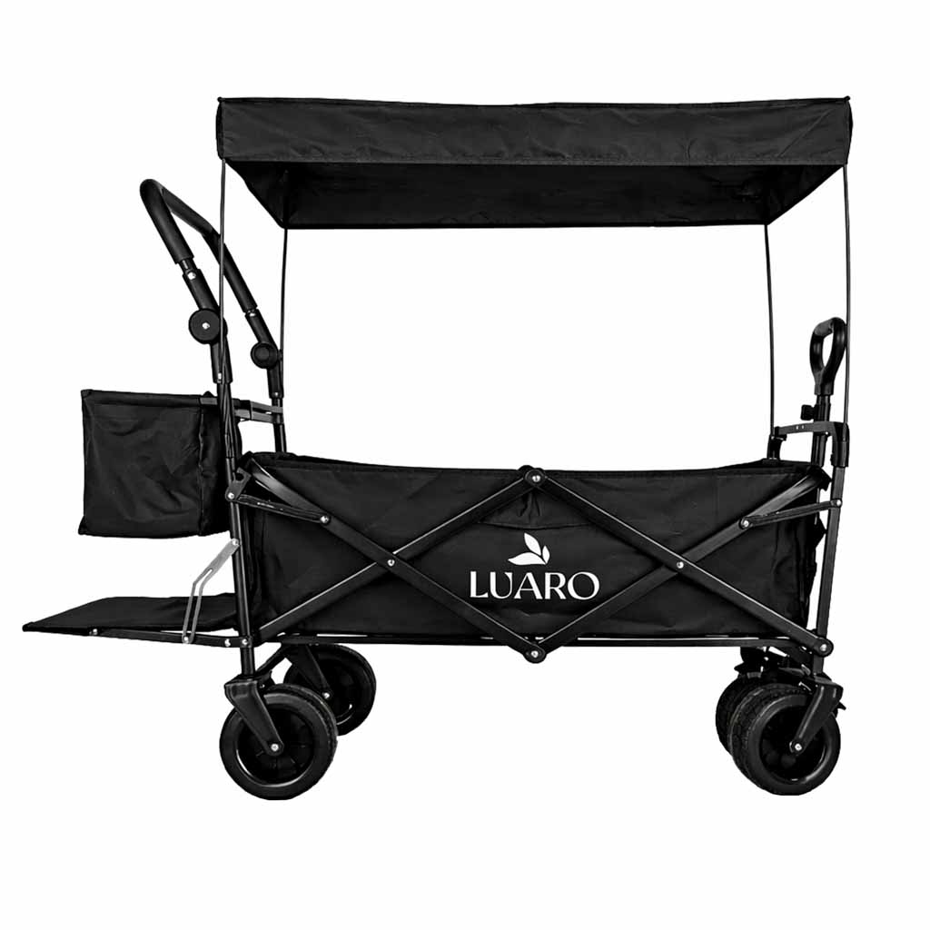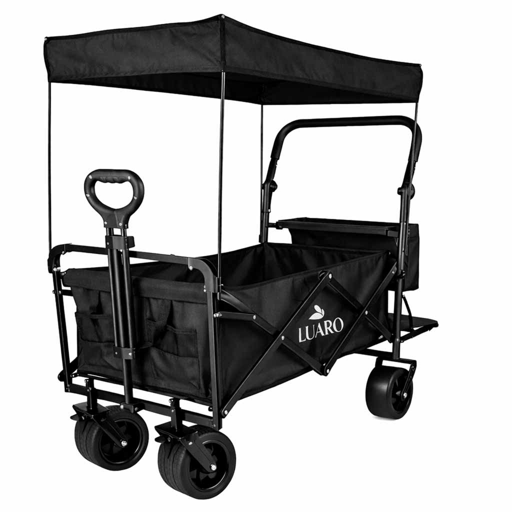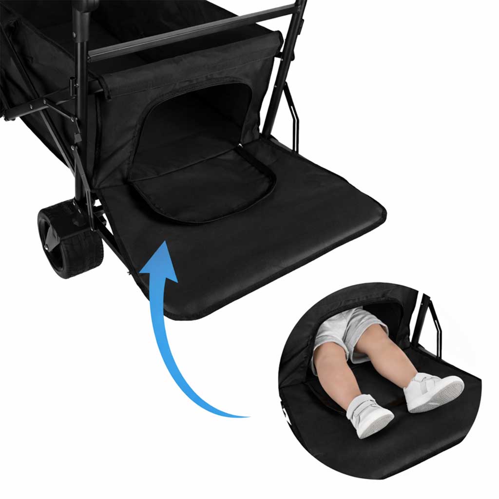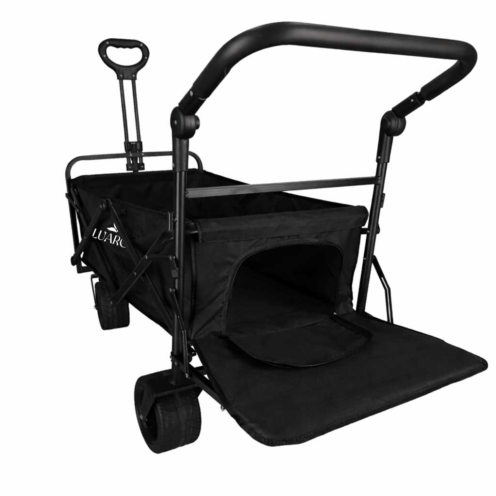 TERENOWE KOŁA I PEŁNA KONTROLA - Szerokie koła typu Tank Wheel oraz skrętne przednie kółka gwarantują płynne prowadzenie na piasku, trawie i nierównym podłożu. Regulowane uchwyty pozwalają wygodnie pchać lub ciągnąć wózek w zależności od potrzeb.