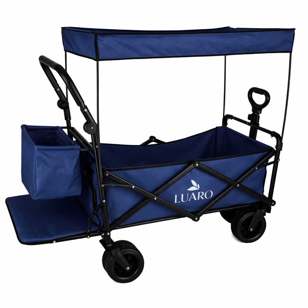 SOLIDNA I SKŁADANA KONSTRUKCJA - Stalowa rama i tkanina Oxford 600D gwarantują trwałość oraz stabilność ładunku do 120 kg. Składany mechanizm ułatwia przechowywanie i transport, gdy wózek nie jest używany.