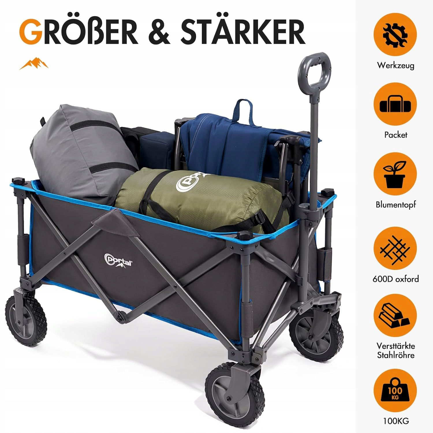 PORTAL Składany wózek transportowy ze zdejmowanym materiałem, wózek transportowy, wózek plażowy, wózek ogrodowy, obciążenie do 100 kg, na kemping, do ogrodu, na zakupy