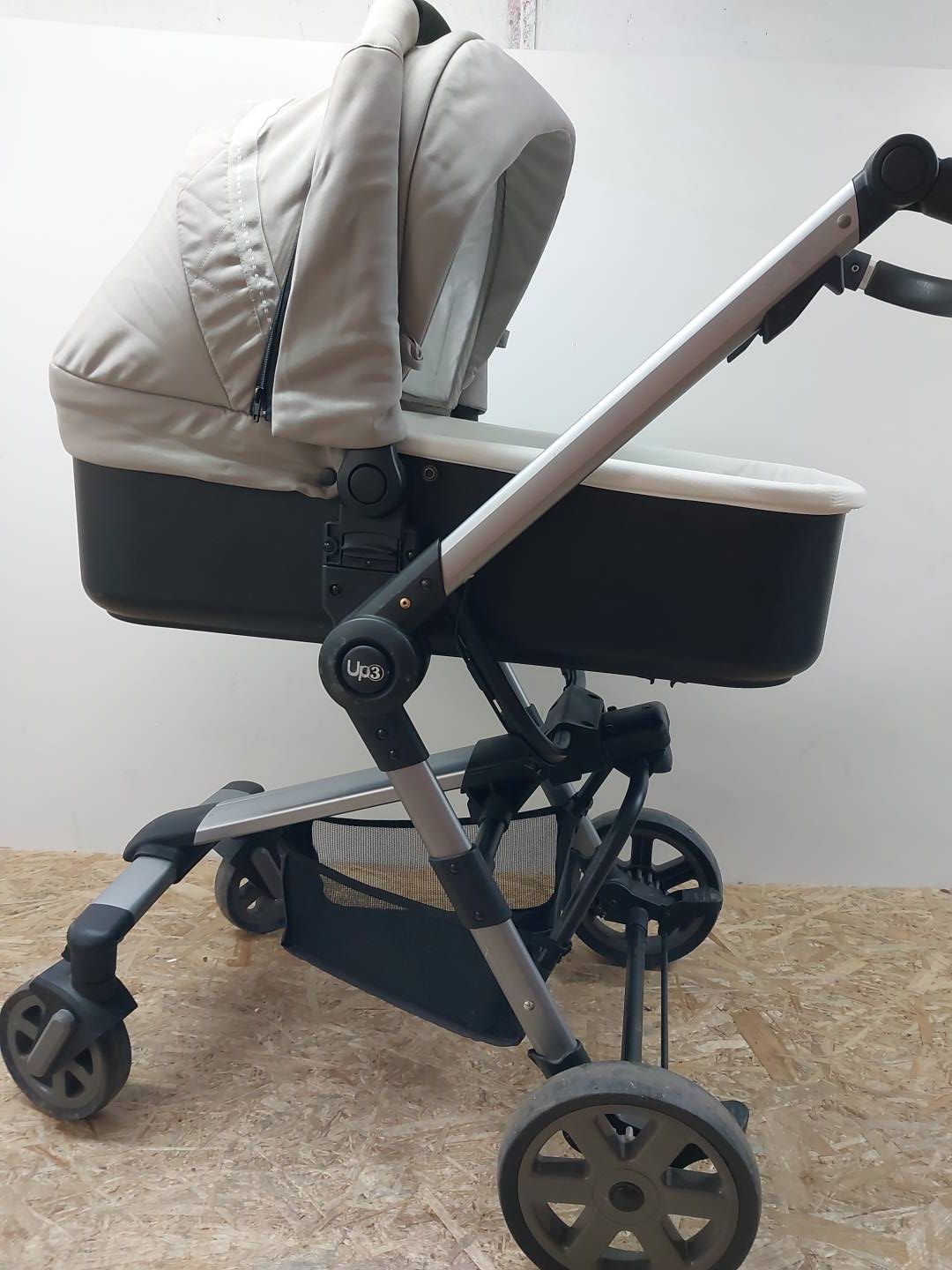 Połączony system Up3 firmy Foppapedretti to wygodne, lekkie i bardzo modne trio. Na stelażu aluminiowym można w praktyczny i szybki sposób zamontować: gondolę w wersji spacerowej z rączką do przenoszenia, nosidełko pełniące funkcję fotelika samochodowego przez pierwsze miesiące, odwracalne siedzisko spacerówki montowane w dwóch kierunkach przodem mamy lub przodem do kierunku jazdy. Up3 łatwo się składa, zajmując mało miejsca.