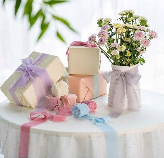 Wstazki dekoracyjne kremowe 6,4 m 3szt