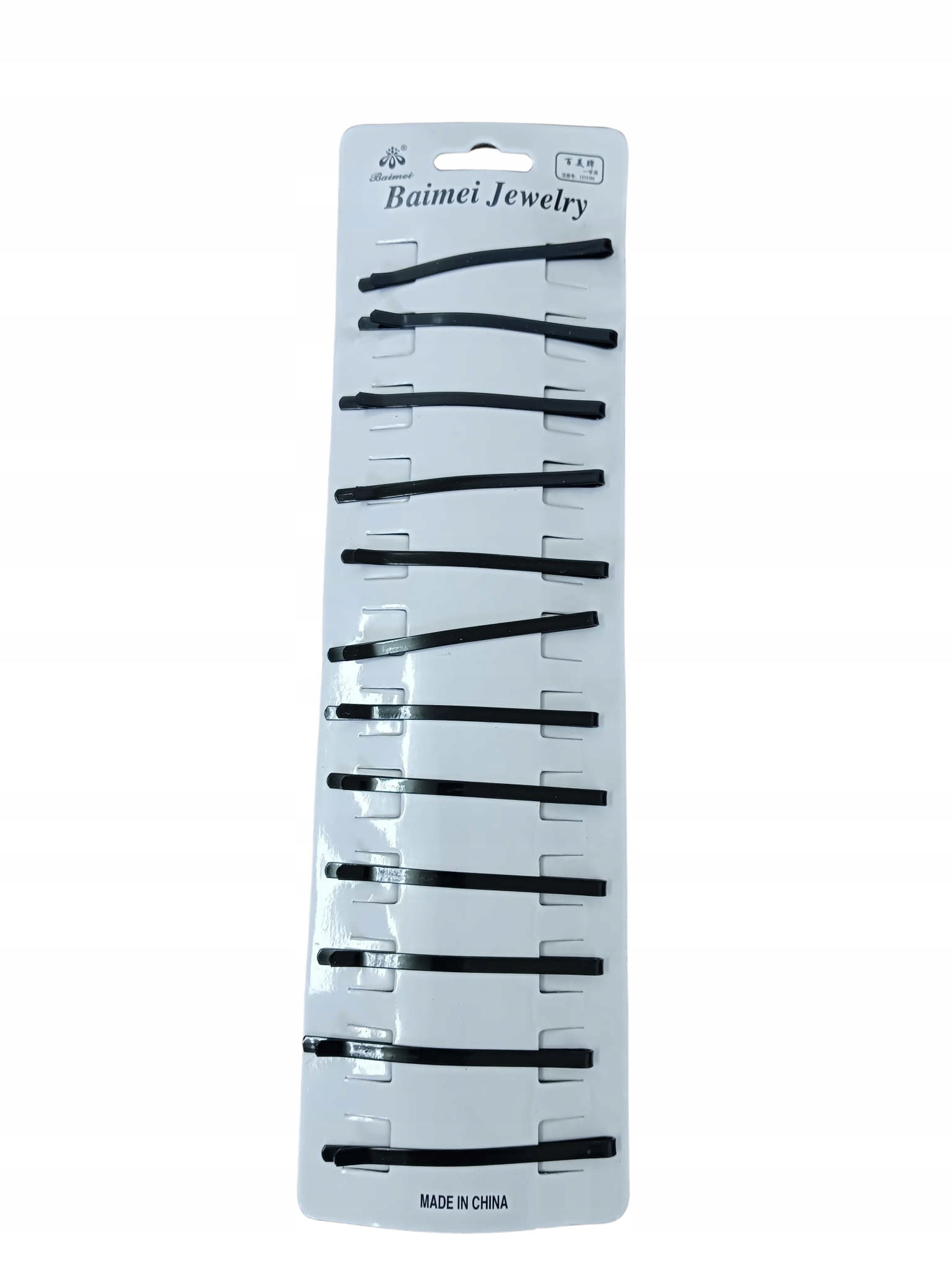 Wsuwki do włosów gładkie, 12 szt., 6,5 cm, czarne.