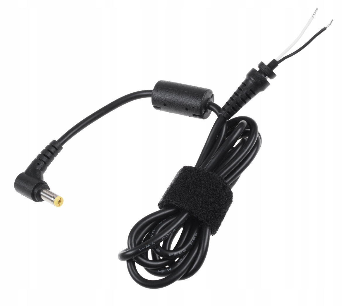 Wysokiej jakości przewód z wtykiem do zasilacza laptopa. Kabel posiada ferrytowy filtr przeciwzakłóceniowy oraz na drugim końcu odgiętkę i przewody gotowe do zalutowania w zasilaczu - nie musisz kupować nowego zasilacza, wystarczy że wymienisz przewód z odpowiednim wtykiem do laptopa.