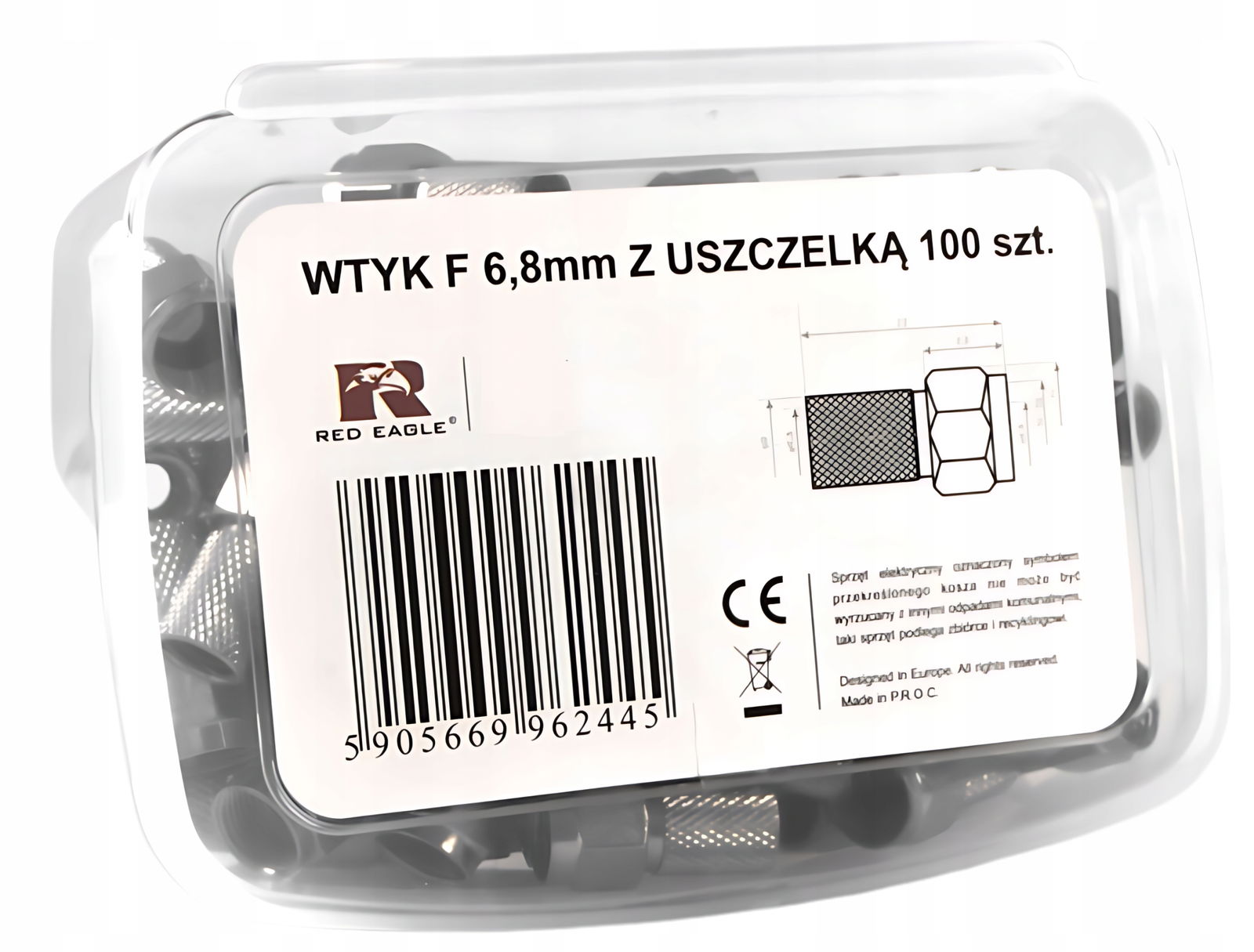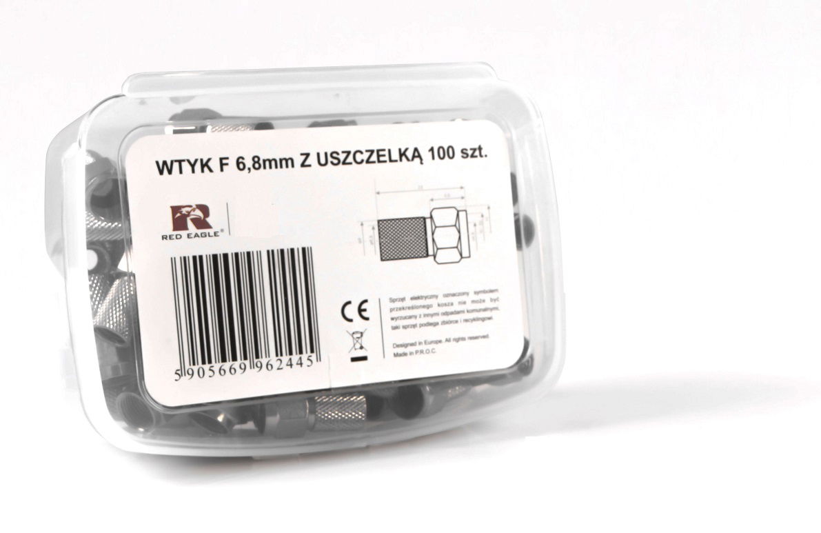 Wtyk F Złącze Nakręcane Z USZCZELKĄ Antenowy TV F 6,8 mm BOX 100szt.