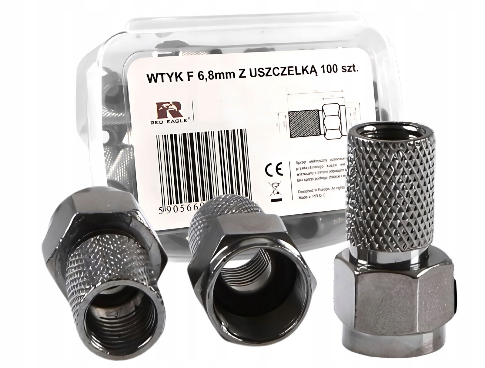 Wtyk F Złącze Nakręcane Z USZCZELKĄ Antenowy TV F 6,8 mm BOX 100szt.
