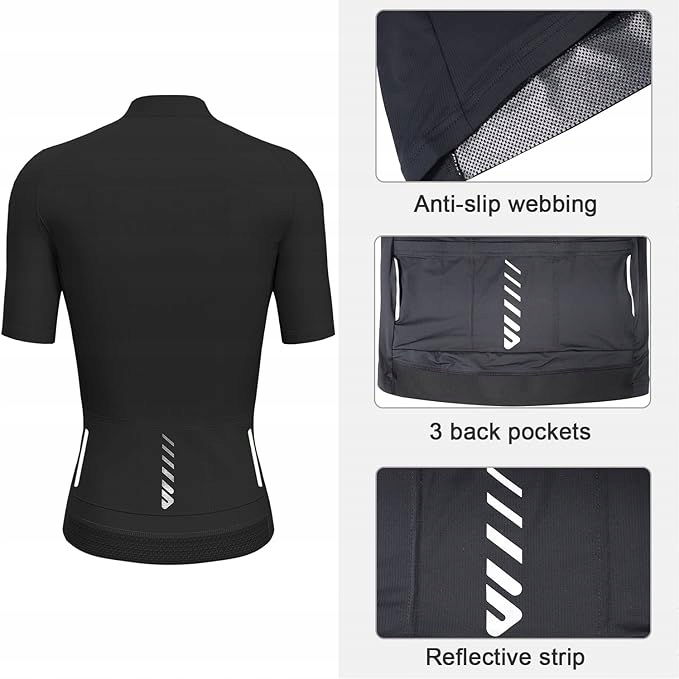 Funkcja utrwalenia: silikonowe detale i elastyczny ściągacz utrzymują koszulkę na miejscu i nie przesuwają się podczas 3600 powtórzeń na godzinę jazdy.