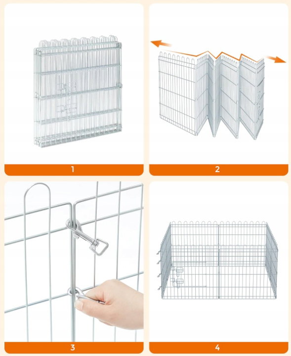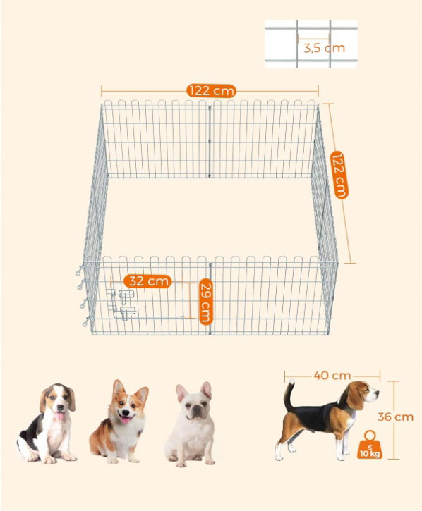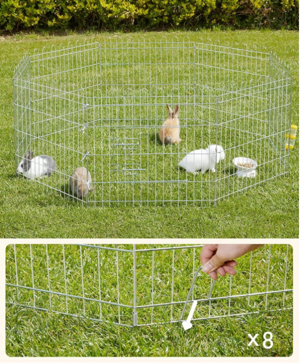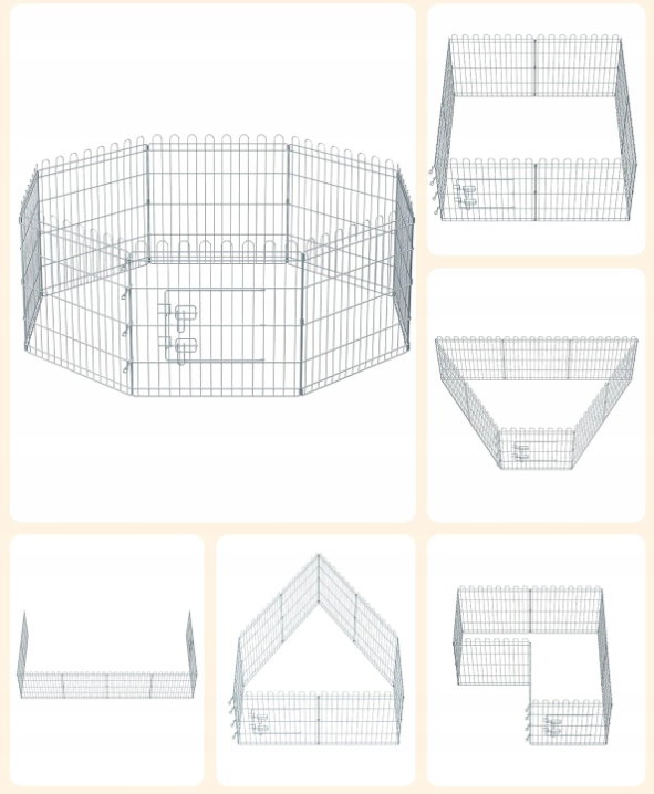- ✴️Projekt DIY, różne kształty: Ten kojec składa się z 8 elementów ogrodzenia, które można łączyć ze sobą, tworząc kwadrat lub ośmiokąt, w zależności od potrzeb. Wysokość 61 cm jest odpowiednia dla zwierząt o wzroście do 40 cm, np. psów, królików i kurcząt.