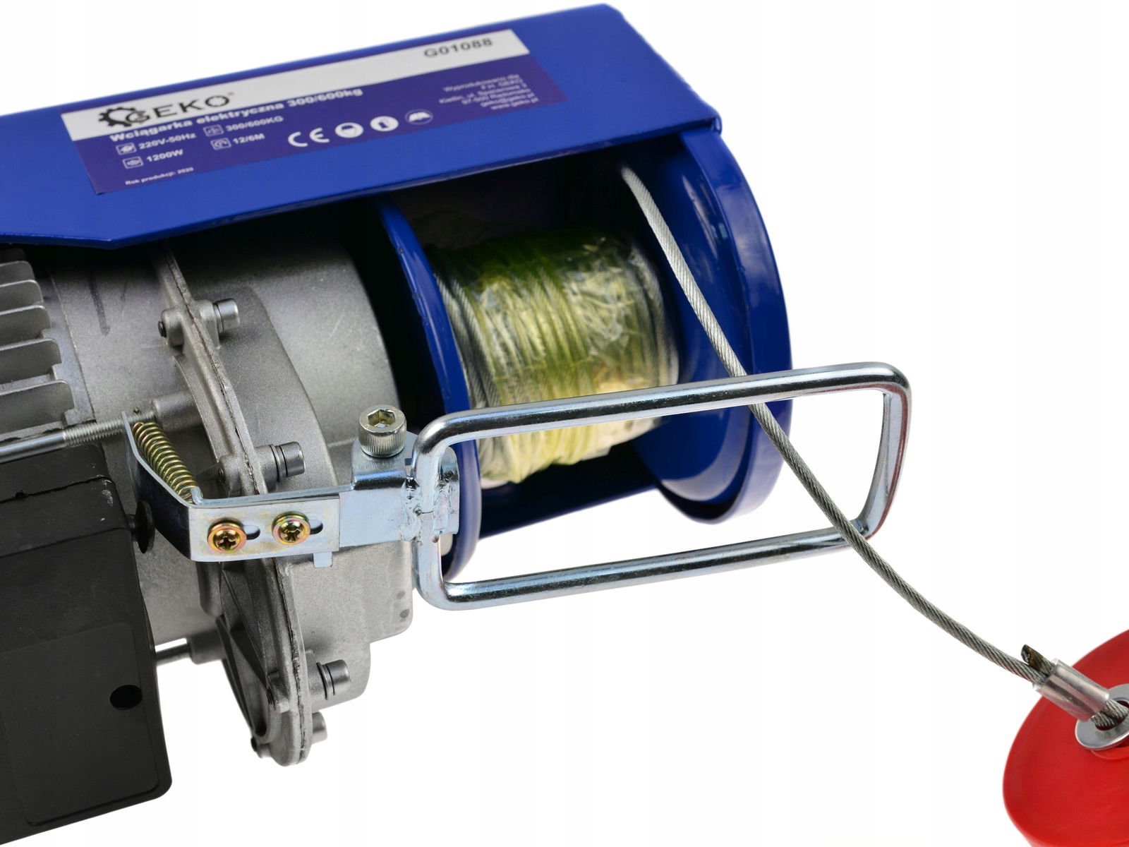 - moc 1200Wdługość liny: 12 mśrednica linki: 4 mmwymiary podstawy: 147 x 385 mmudźwig na jednym haku: 300 kgudźwig na dwóch hakach: 600 kgszybkość podnoszenia na jednym haku: 10 m/minszybkość podnoszenia na dwóch hakach: 5 m/minwysokość podnoszenia na jednym haku: 12 mwysokość podnoszenia na dwóch hakach: 6 mautomatyczny wyłącznik bezpieczeństwamiedziane uzwojenie silnika wciągarki znacznie zwiększa żywotność silnika w porównaniu z uzwojeniem aluminiowymwytrzymała aluminiowa obudowa silnika z powiększonymi żeberkami, co pozwala na bardziej skuteczne odprowadzanie ciepłapowiększona turbina chłodząca silnikaergonomiczny pilot sterujący z kablem o długości 140cmcertyfikat CE