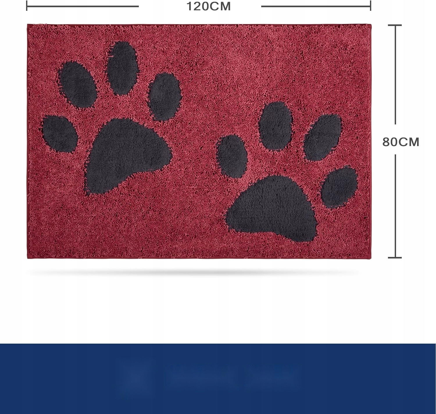 Wycieraczka Dla Psa 80x120 Antypoślizgowa Chłonna Pranie Czerwone Łapy
