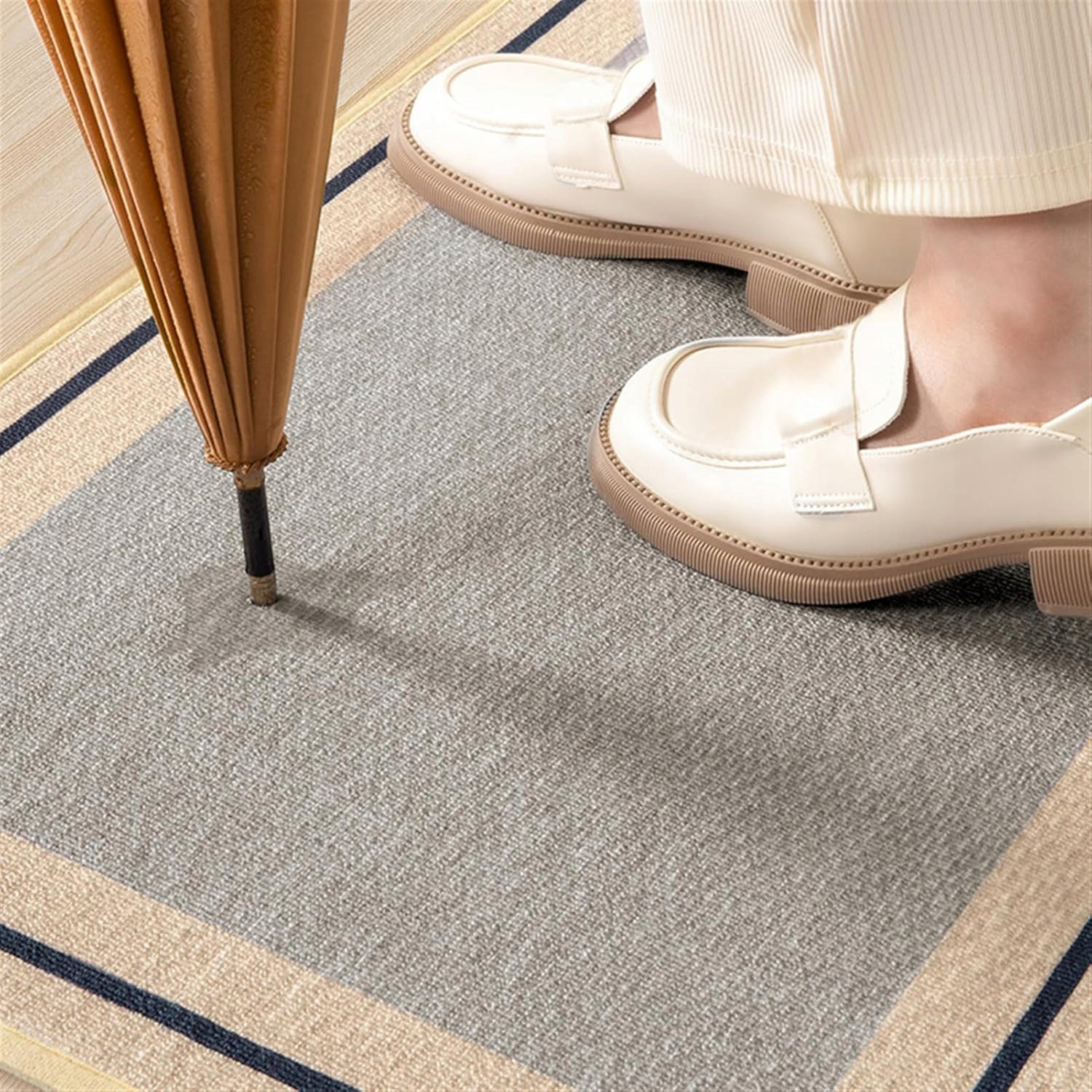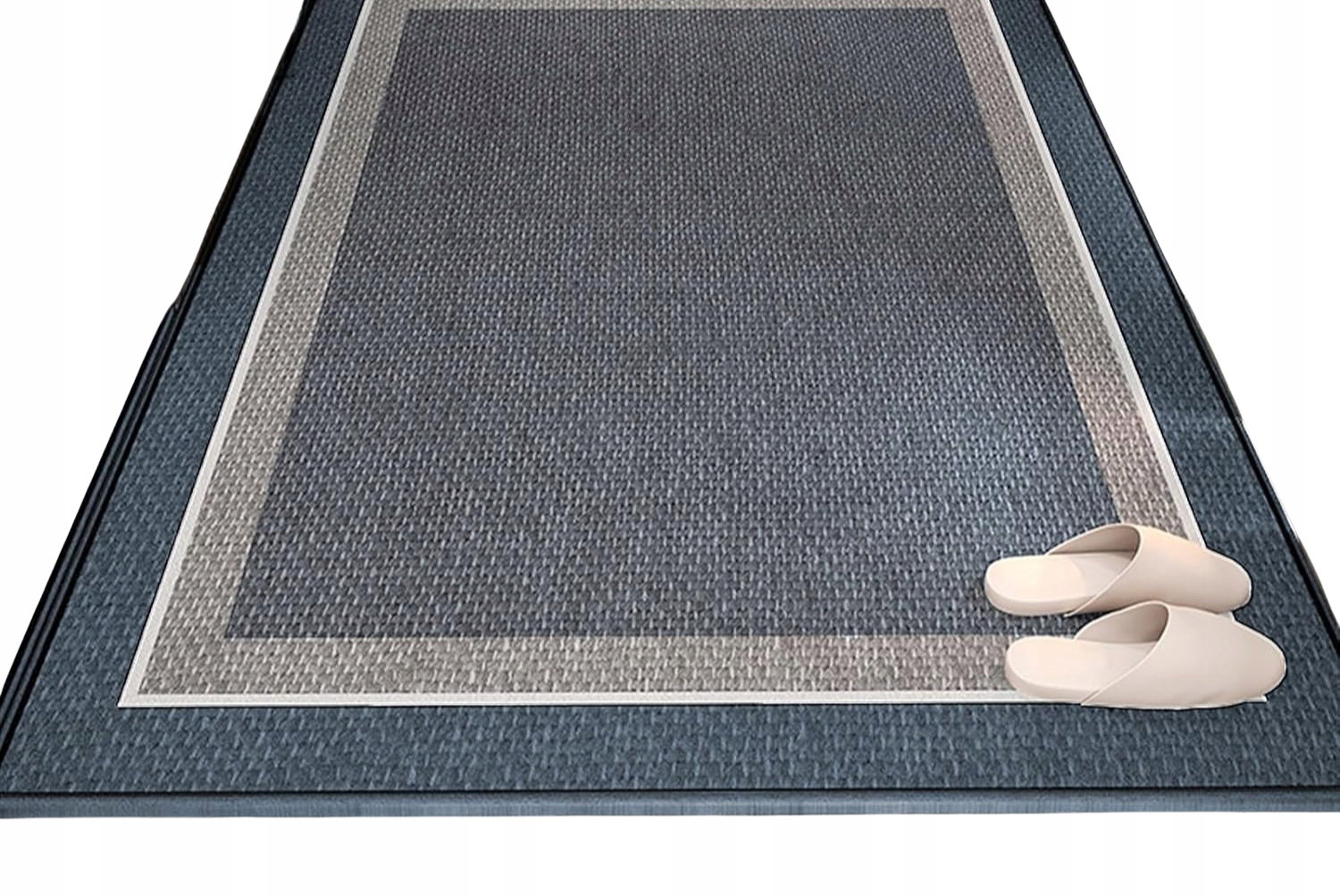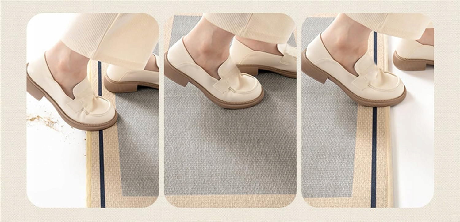 - Antypoślizgowy spód: dolna warstwa z gumy posiada teksturowaną powierzchnię zwiększającą przyczepność do podłoża. Dzięki temu mata pozostaje stabilna nawet na gładkich powierzchniach takich jak płytki, marmur, drewno czy beton. Rozwiązanie to zwiększa bezpieczeństwo użytkowania i ogranicza ryzyko przesuwania się maty podczas chodzenia.