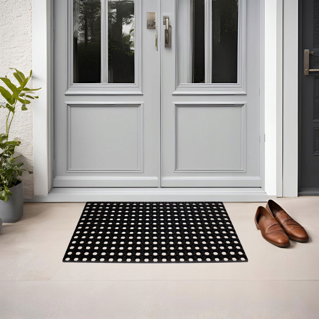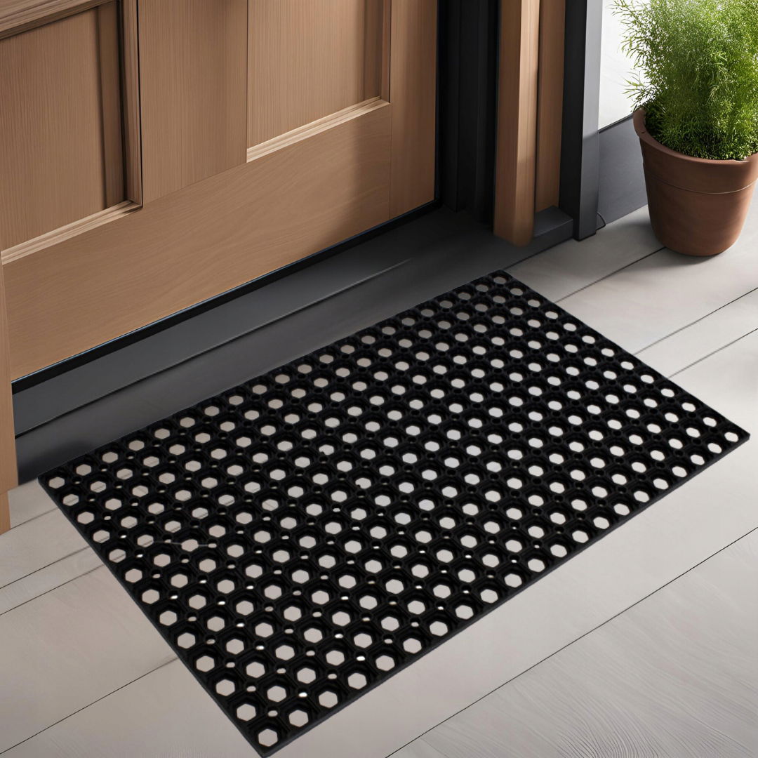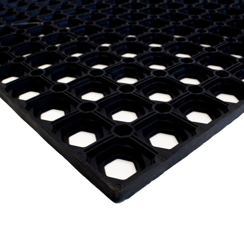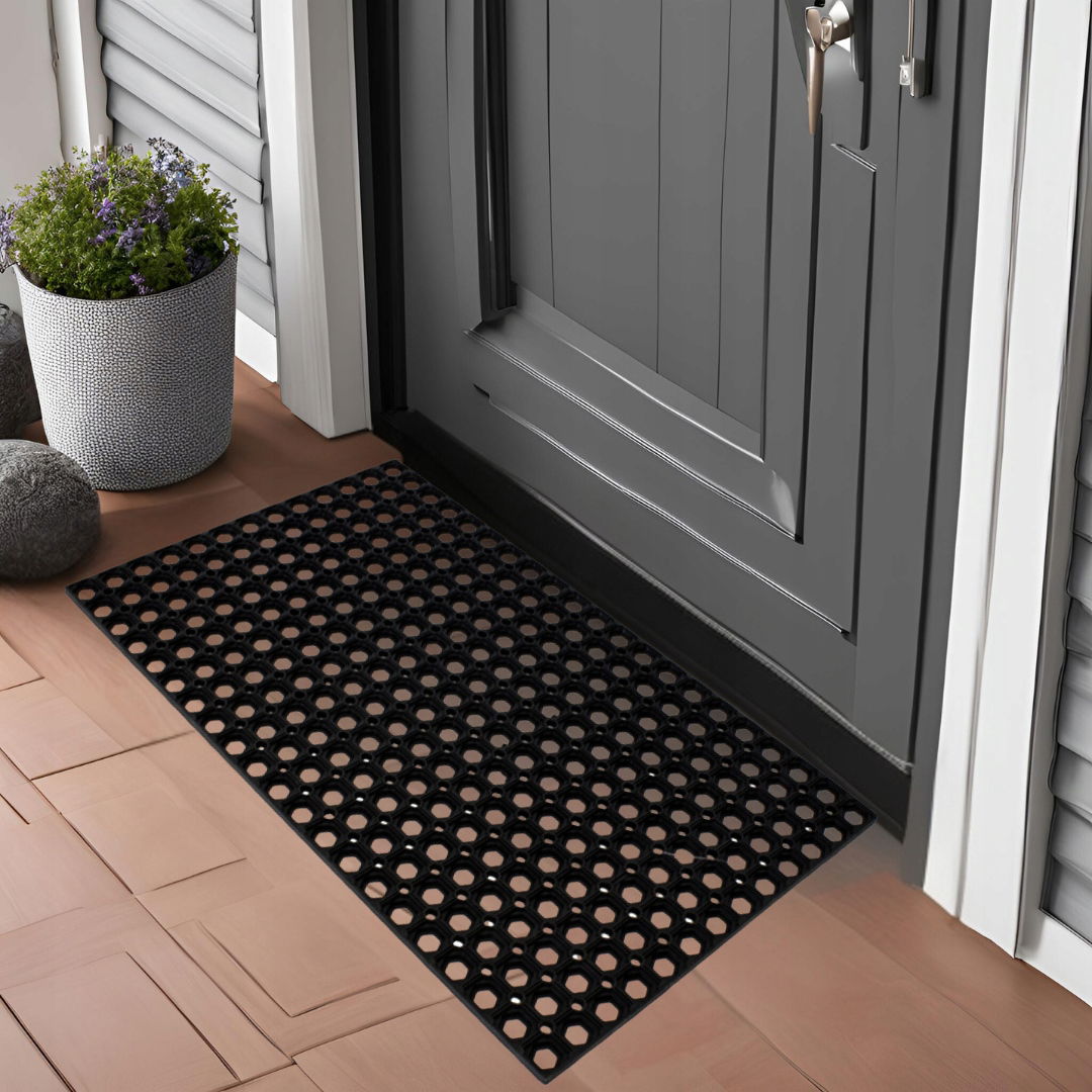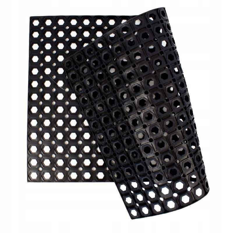 Funkcjonalna i trwała wycieraczka gumowa o wymiarach 50 cm x 80 cm, doskonale sprawdzająca się w przedpokoju, holu, korytarzu oraz wiatrołapie. Jej konstrukcja skutecznie zapobiega przenoszeniu zanieczyszczeń do wnętrza pomieszczeń, a także nadaje się do stosowania na ogrzewanie podłogowe.