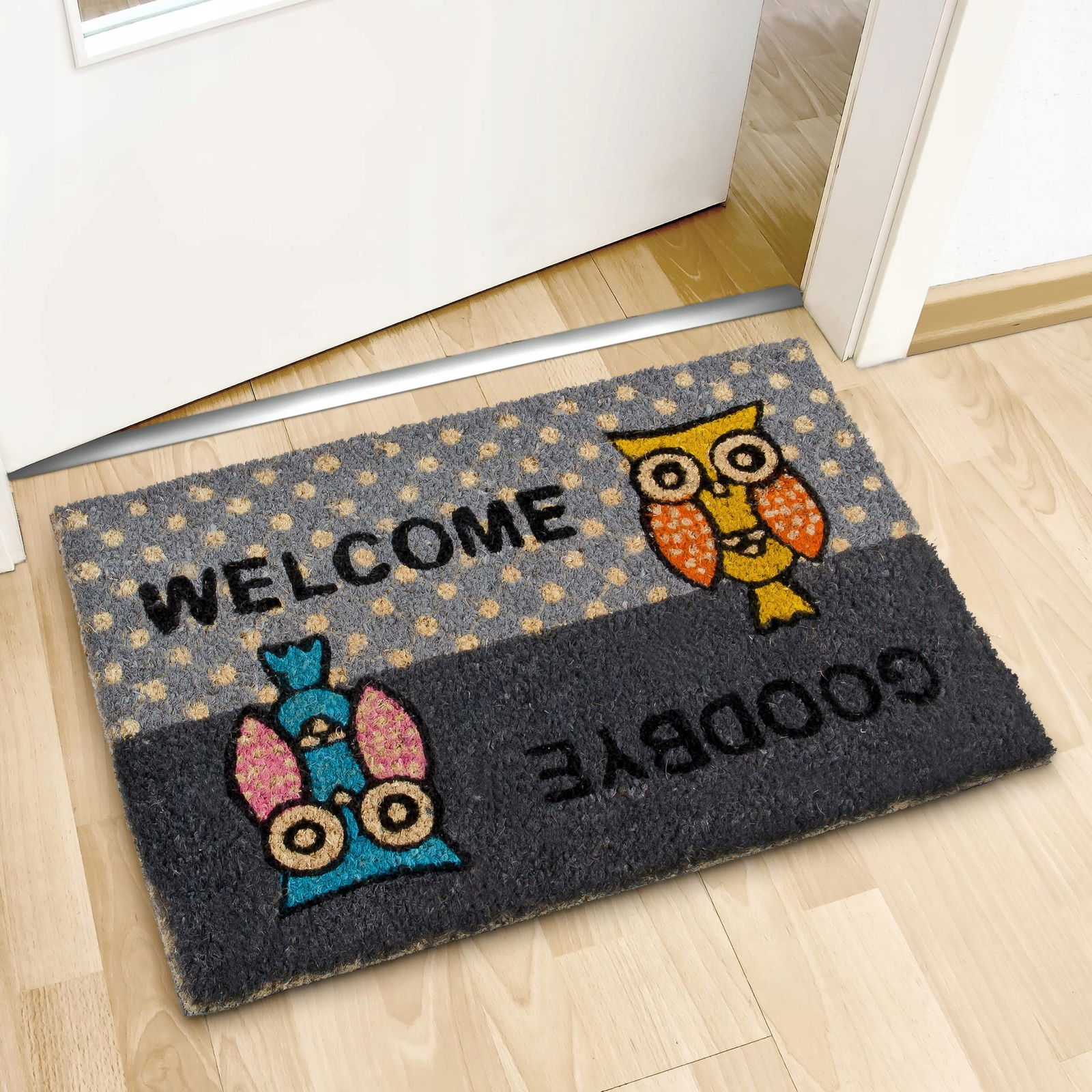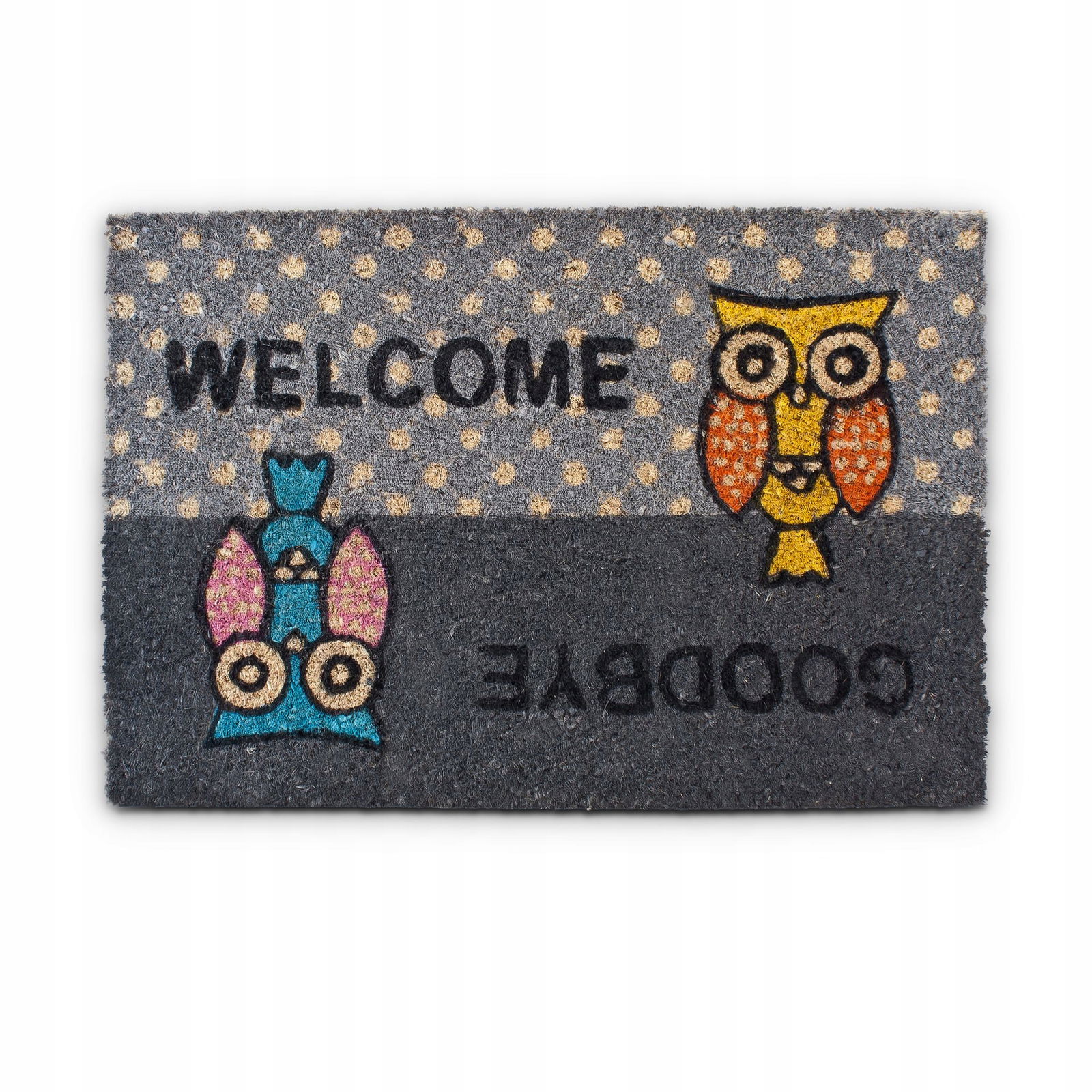 Wycieraczka kokosowa z nadrukiem w sowy.