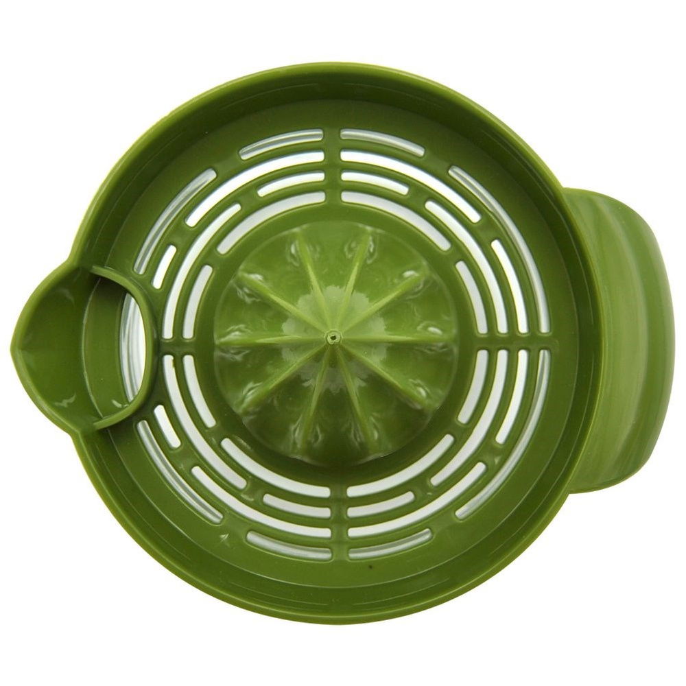 PRAKTYCZNY - Wyciskacz do cytrusów wraz z pojemnikiem do przechowywania soku. Pomaga wycisnąć sok z cytryny, pomarańczy lub mandarynki. Wyciskacz ma wymiary 11,5 x 8,5 cm.