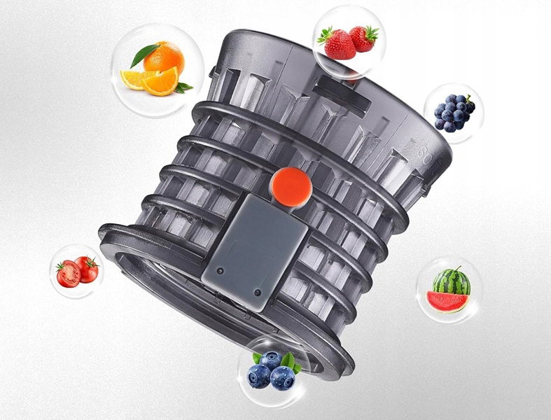 - Radzi sobie z miękkimi owocami, twardymi warzywami, a nawet zielonymi liśćmi.
