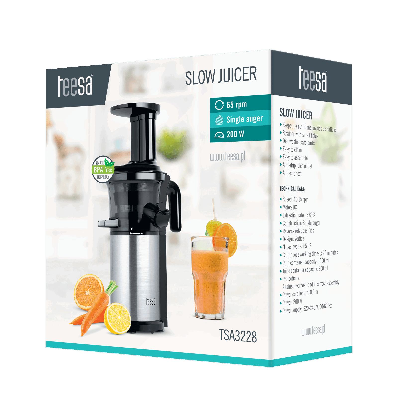 Wyciskarka wolnoobrotowa do warzyw i owoców TEESA TSA3228