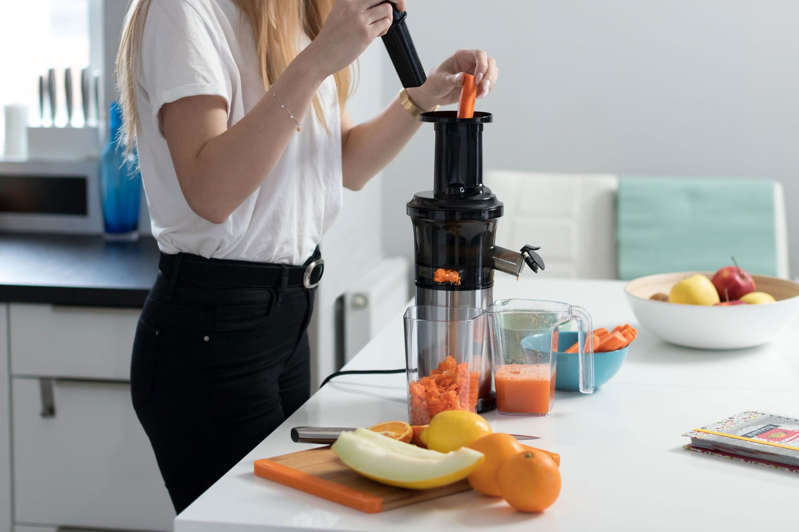 Załączone wyposażenie: pojemnik na miąższ, popychacz, szczoteczka do czyszczenia