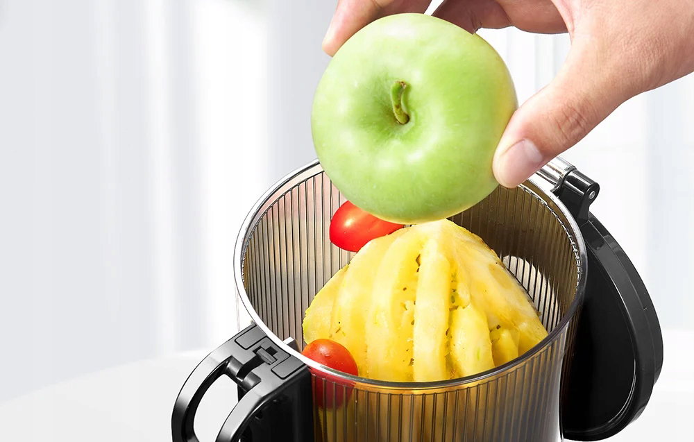 Wyciskarka wolnoobrotowa AMZCHEF SJ-036-SV to doskonały wybór dla miłośników świeżych, naturalnych soków. Dzięki dużemu otworowi o średnicy 135 mm nie trzeba kroić składników na drobne kawałki, co oszczędza czas i zapewnia czystość w kuchni. Wysokiej jakości silnik o mocy 250 W umożliwia precyzyjne i efektywne wyciskanie soku, minimalizując utlenianie, a także gwarantuje wyjątkową trwałość i moc ślimaka, co pozwala na maksymalną ekstrakcję soku.