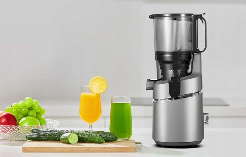 - Silnik pracuje niezwykle cicho – poniżej 60 dB, dzięki czemu możesz przygotowywać soki o każdej porze, nie martwiąc się o hałas.