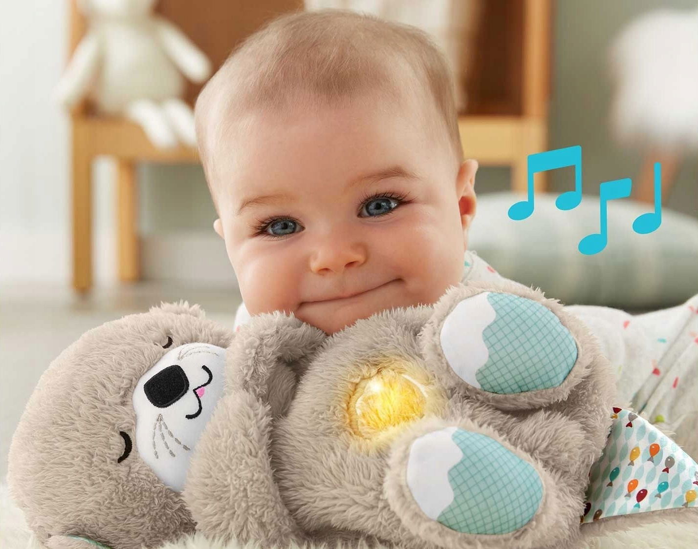 Wydra Oddychający uspokajacz to urocza przytulanka dla najmłodszych, która pomoże wyciszyć dziecko, by spokojnie zasnęło. Jej miękki brzuszek podnosi się i opada jak przy oddychaniu, co w naturalny sposób koi maluszka. Zabawka posiada 30 minut uspokajającej muzyki i innych dźwięków oraz w delikatne światełko. Uroczy wygląd wydry oraz miękkie materiały czynią zabawkę idealną do zasypiania.