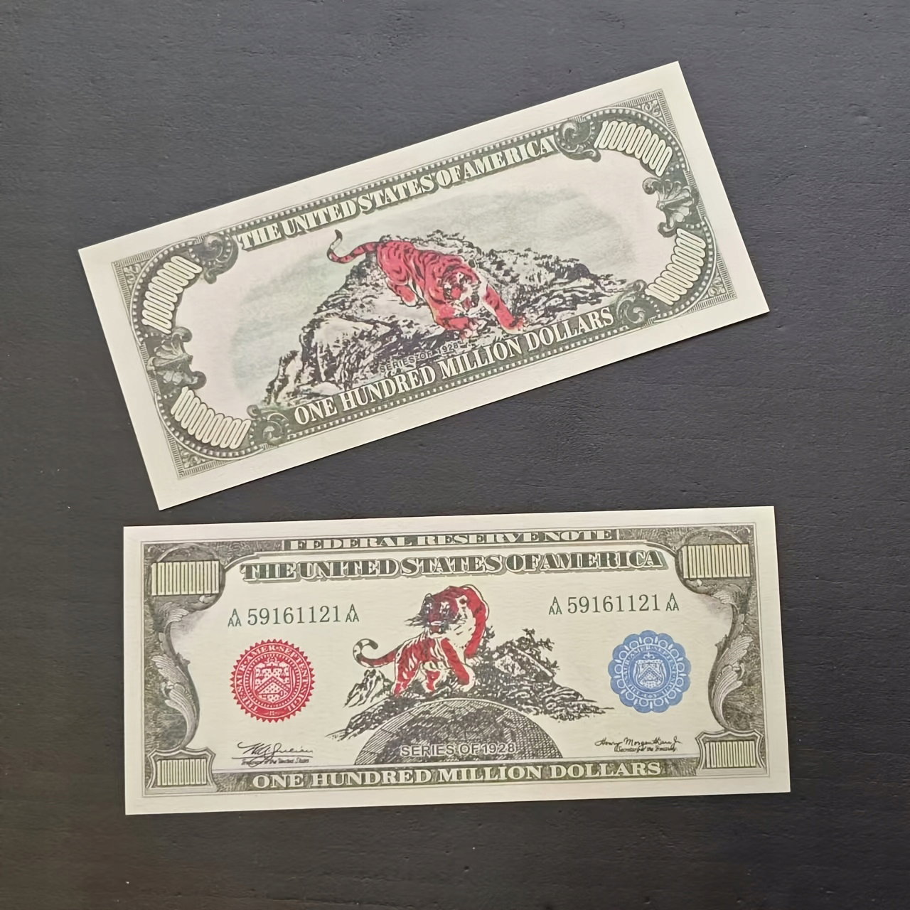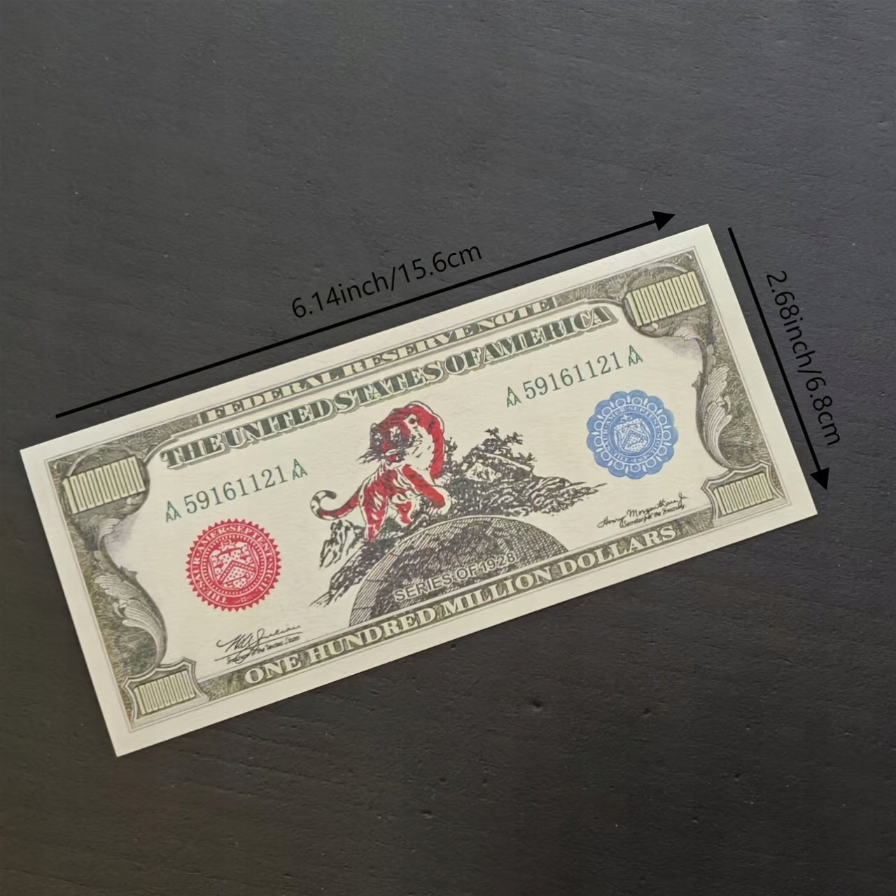 Przedmiotem aukcji jest unikatowy banknot kolekcjonerski o nominale 100 000 000 dolarów. Ten niezwykle rzadki egzemplarz z pewnością wzbogaci każdą kolekcję numizmatyczną lub stanie się oryginalnym prezentem.