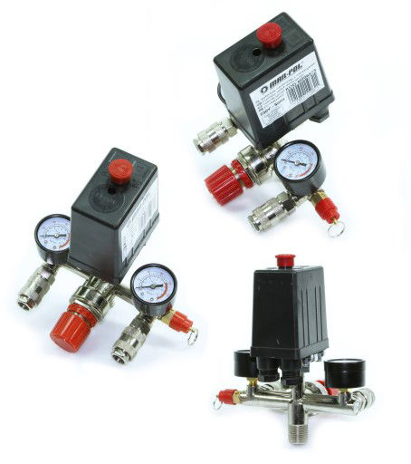 WYŁĄCZNIK CIŚNIENIOWY do KOMPRESORA 230V PRESOSTAT Z REDUKTOREM MANOMETRY