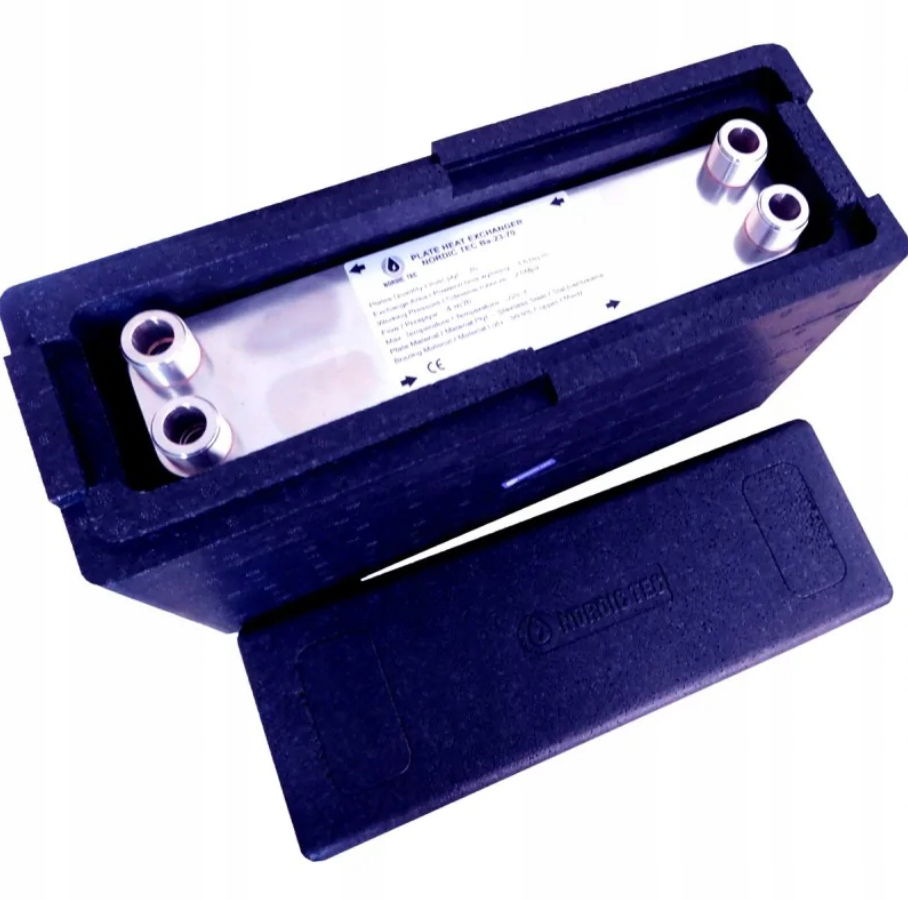 Jeden z nowszych modeli wprowadzonych przez producenta do obrotu w roku 2022. Jest odpowiedzią na zapytania klientów, głównie z branży chłodniczej o możliwość dostarczania urządzenia o stosunkowo niskim przepływie, ale z dużą powierzchnią. Faktycznie stosunek powierzchni przekazu cieplnego do przepływu wygląda imponująco w zestawieniu z innymi wymiennikami. Tradycyjnie model Ba-23-70, 70-płytowy można zakupić z akcesoriami - z izolacją EPP oraz uchwytami montażowymi i śrubunkami.
