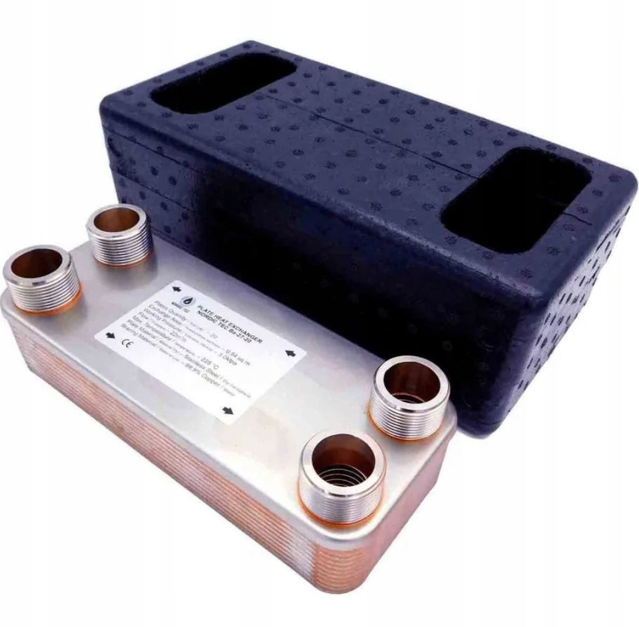 Wymiennik ciepła 20 płytowy do domowych lub przemysłowych systemów grzewczych (CO lub CWU) lub chłodniczych. Uniwersalny pod kątem możliwości współpracy z różnymi źródłami ciepła (pompy ciepła, kominki, kotły stałopalne, kondensacyjne - gazowe oraz inne). Może pracować zarówno z wodą jak i glikolem (roztworem glikolu).