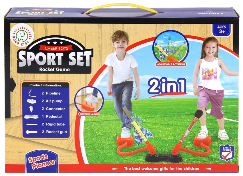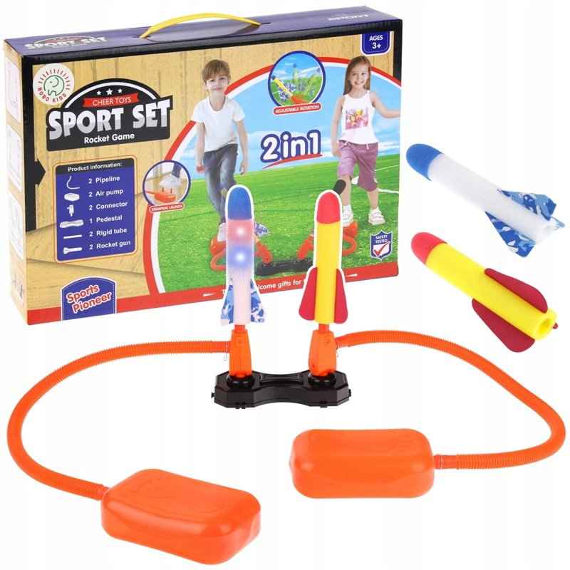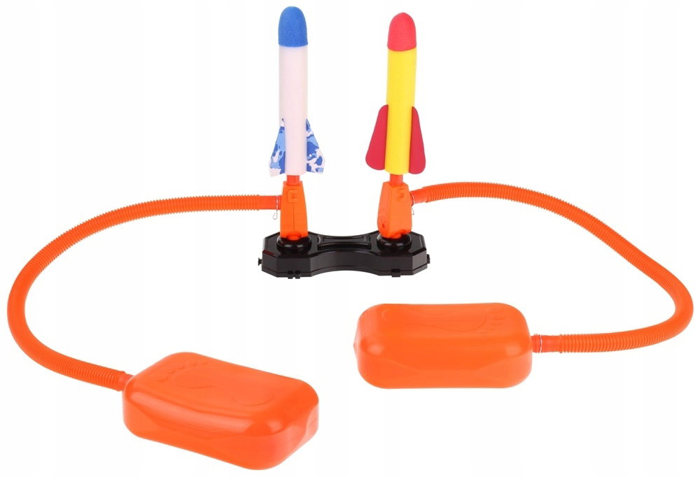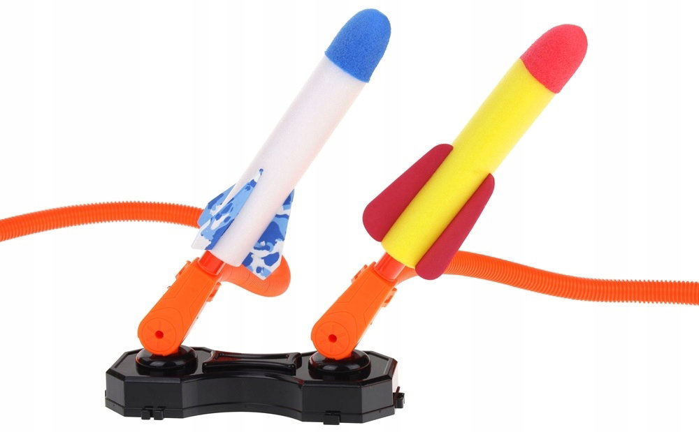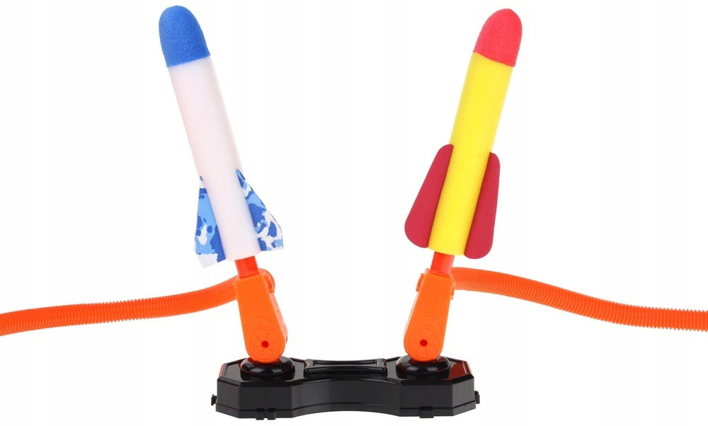 Powietrzna podwójna wyrzutnia piankowych rakiet to świetna zabawa na świeżym powietrzu dla każdego! Rakiety umieść na rurkach wyrzutni, do którego podłączone są poduszki, a następnie energicznym ruchem naciśnij na poduszki. Wytworzone w ten sposób ciśnienie wewnątrz całej zabawki próbując znaleźć ujście, wybija rakiety wysoko w powietrze! Im mocniej uderzysz w poduszki, tym wyżej i dalej poleci rakieta! Zmierz się ze znajomymi i sprawdź, czyja rakieta poleci wyżej!