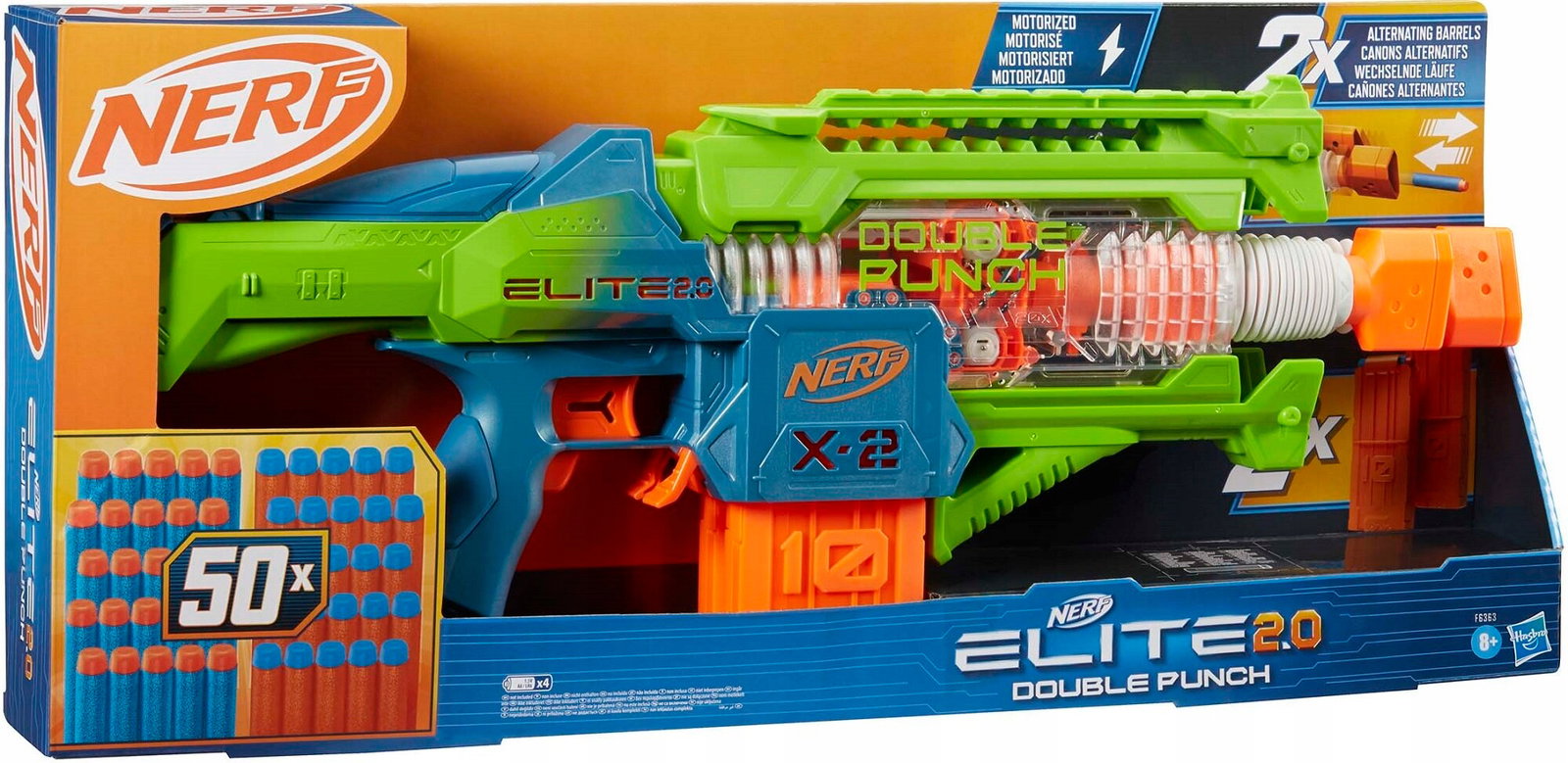 Wyrzutnia Nerf Elite Double Punch od Hasbro to zmotoryzowany blaster z ekscytującymi funkcjami i odlotowym wzornictwem. Poczuj radość ze strzelania jednym z najszybszych miotaczy Nerf!