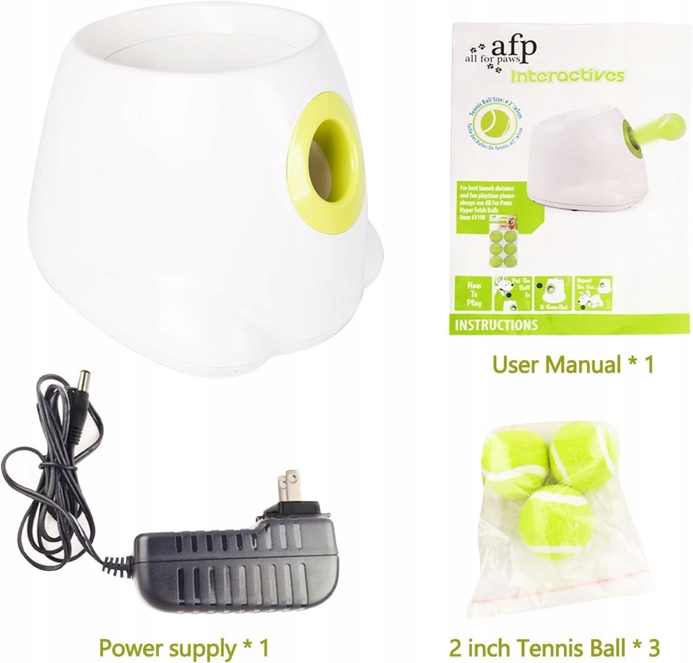 Interaktywna wyrzutnia piłek All For Paws to automatyczna maszyna do aportowania, z której może korzystać pies i właściciel lub tylko pies. Funkcje wyrzutni sprawiają, że niezależna gra jest łatwa i przyjemna, wystarczy ją podłączyć, wybrać odległość wystrzeliwania, a następnie wrzucić piłkę o maksymalnej średnicy 2,5 cala.