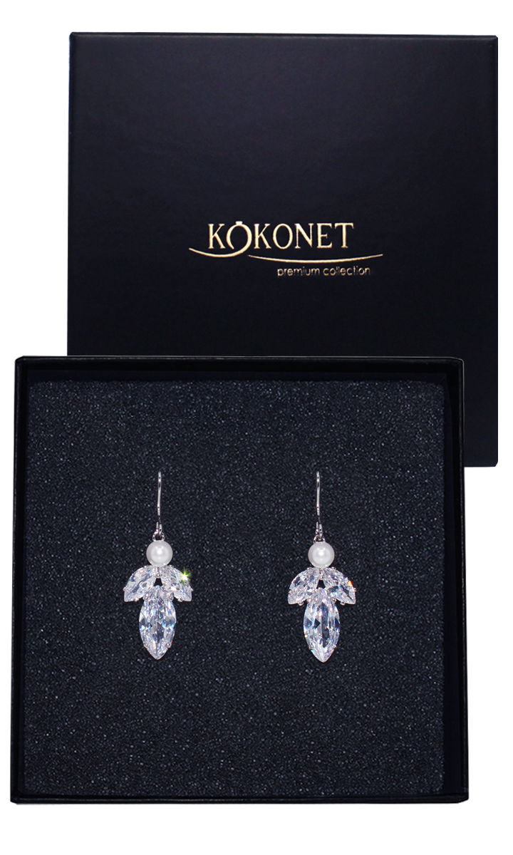 Eleganckie srebrne wiszące kolczyki z cyrkoniami i perłą SALMA uzupełnią zarówno wieczorowe jak i ślubne suknie. Połączenie klasycznej perły z blaskiem cyrkonii jest bardzo eleganckie i efektowne. Kolczyki będą pasować do upiętych włosów, jak i rozpuszczonych, bo nie zgubią się pomiędzy kosmykami włosów.