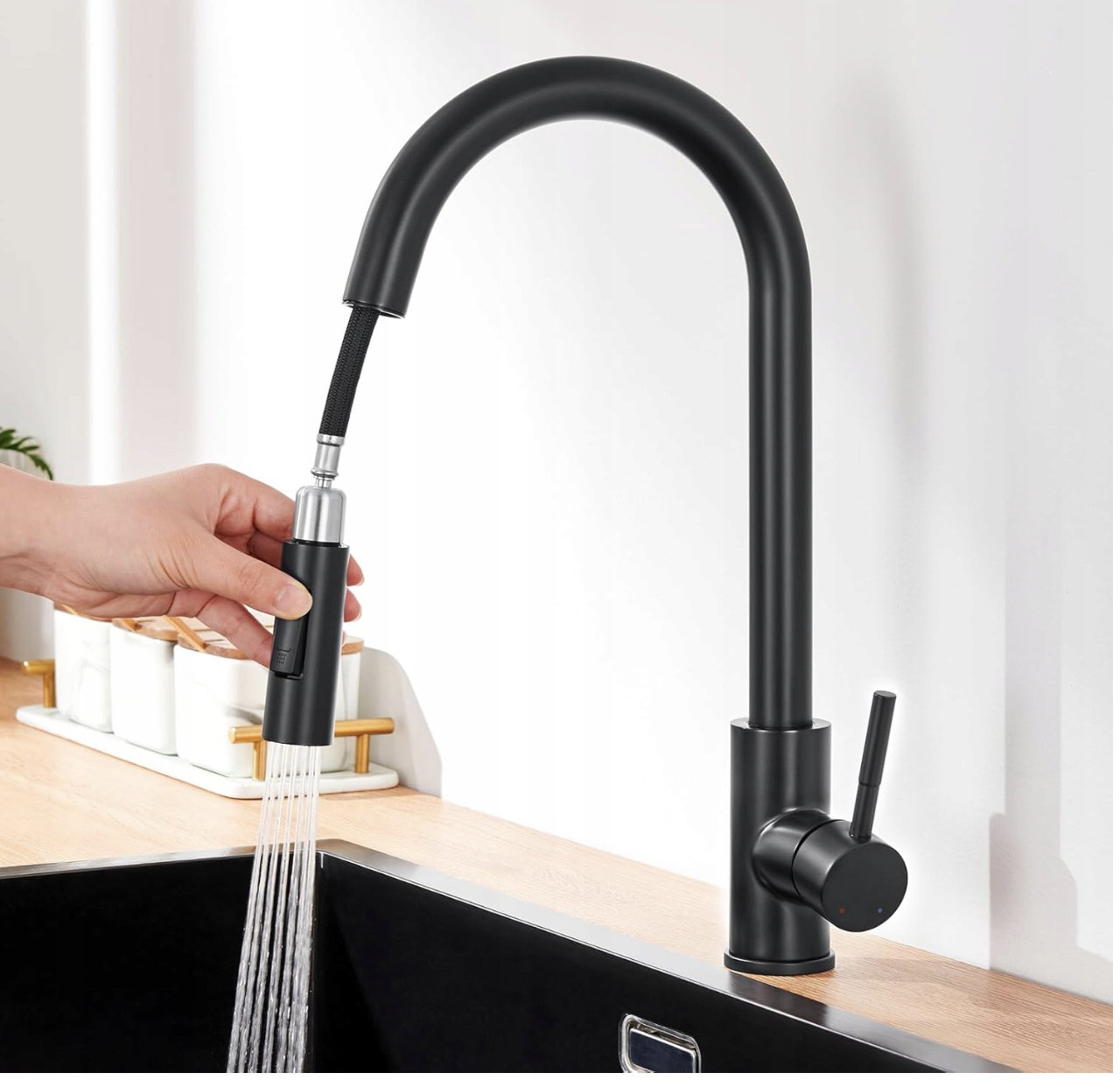 Wysokocisniowa bateria kuchenna obracana z wyciąganą wylewką Lonheo czarna