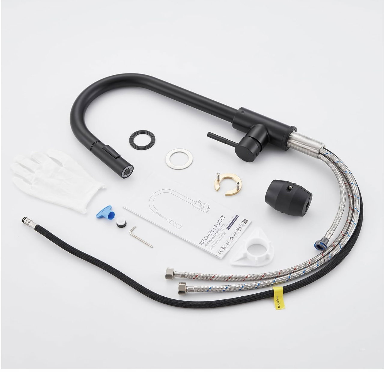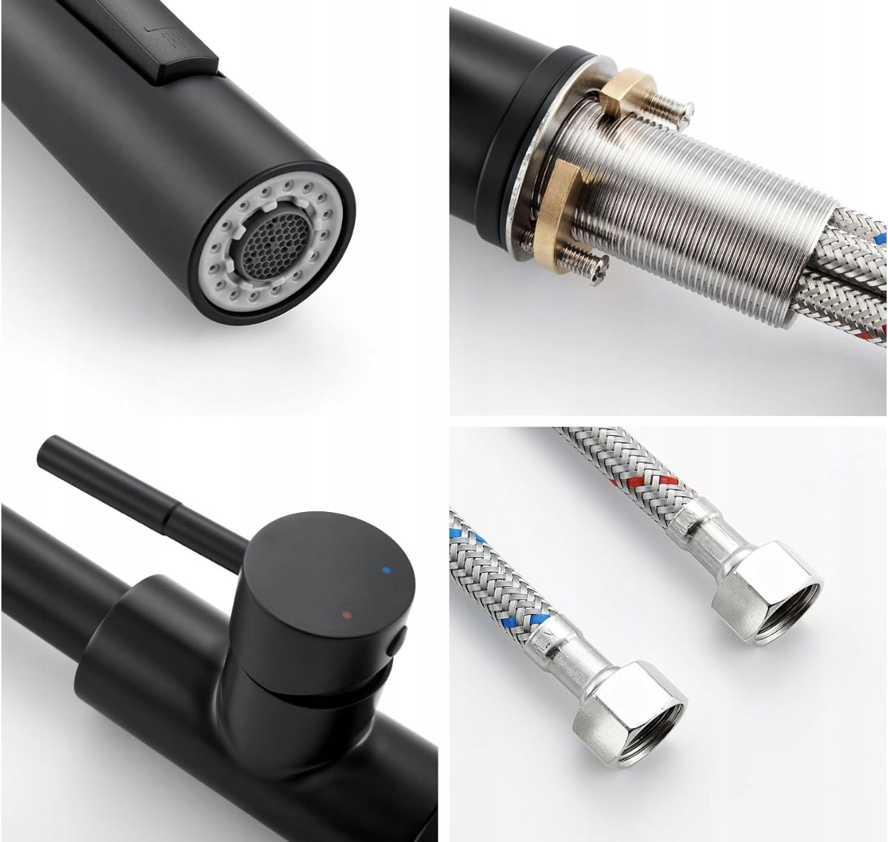 Kran kuchenny jest wykonany ze stali nierdzewnej, a węże posiadają certyfikat KTW.