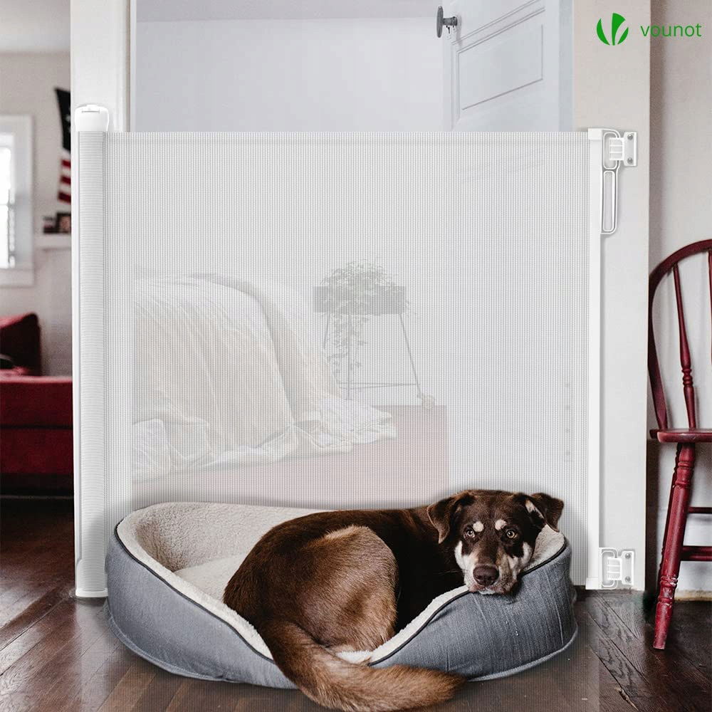 VOUNOT Wysuwana bramka schodowa dla niemowląt, wysuwana do 180 cm szerokości, cicha obsługa jedną ręką, bramka bezpieczeństwa do wewnątrz, na zewnątrz, schodów i korytarzy, biała