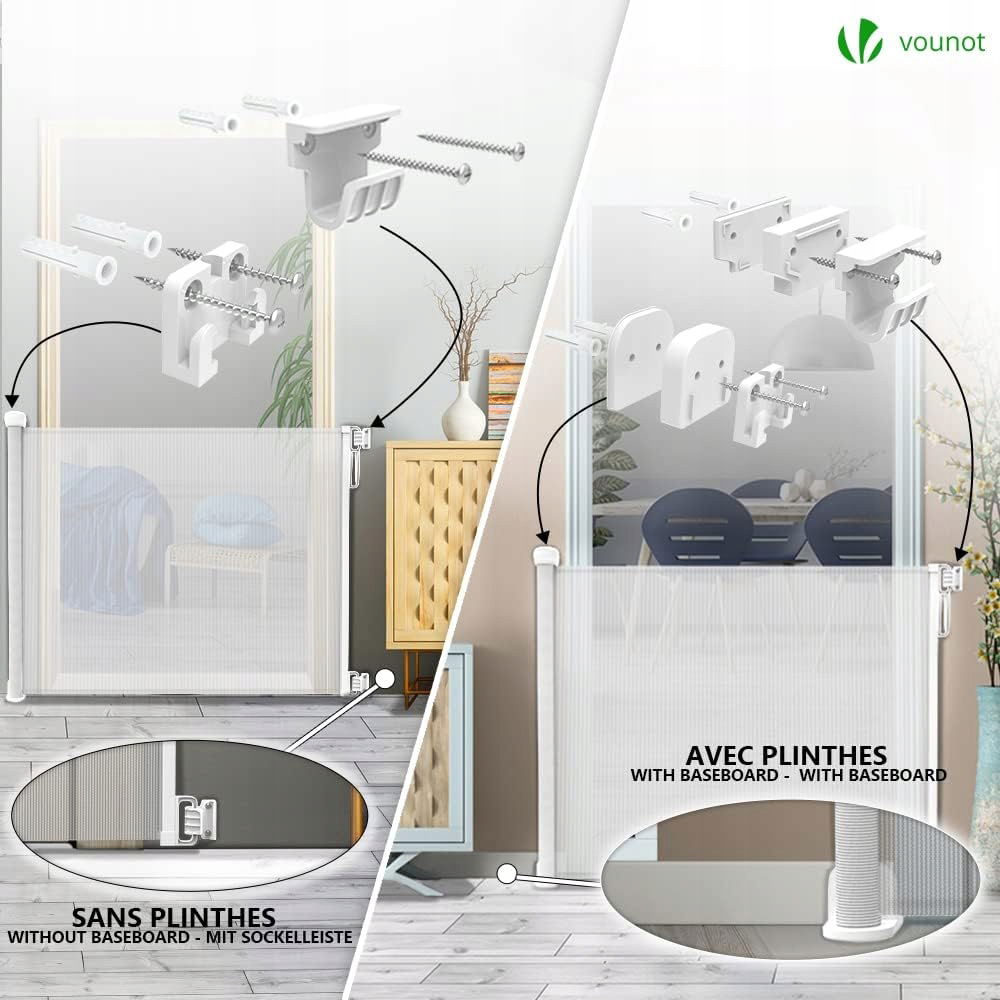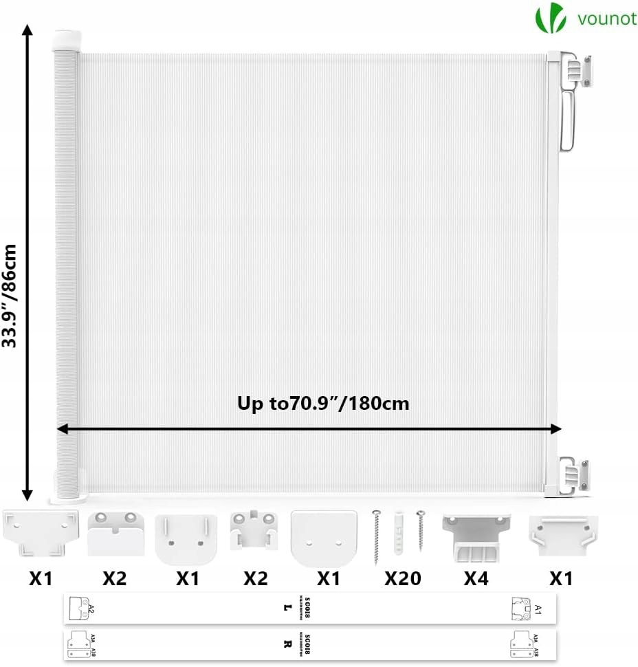 - nazwa przedmiotu: VOUNOT Wysuwana bramka schodowa dla niemowląt, wysuwana do 180 cm szerokości, cicha obsługa jedną ręką, bramka bezpieczeństwa do wewnątrz, na zewnątrz, schodów i korytarzy, biała